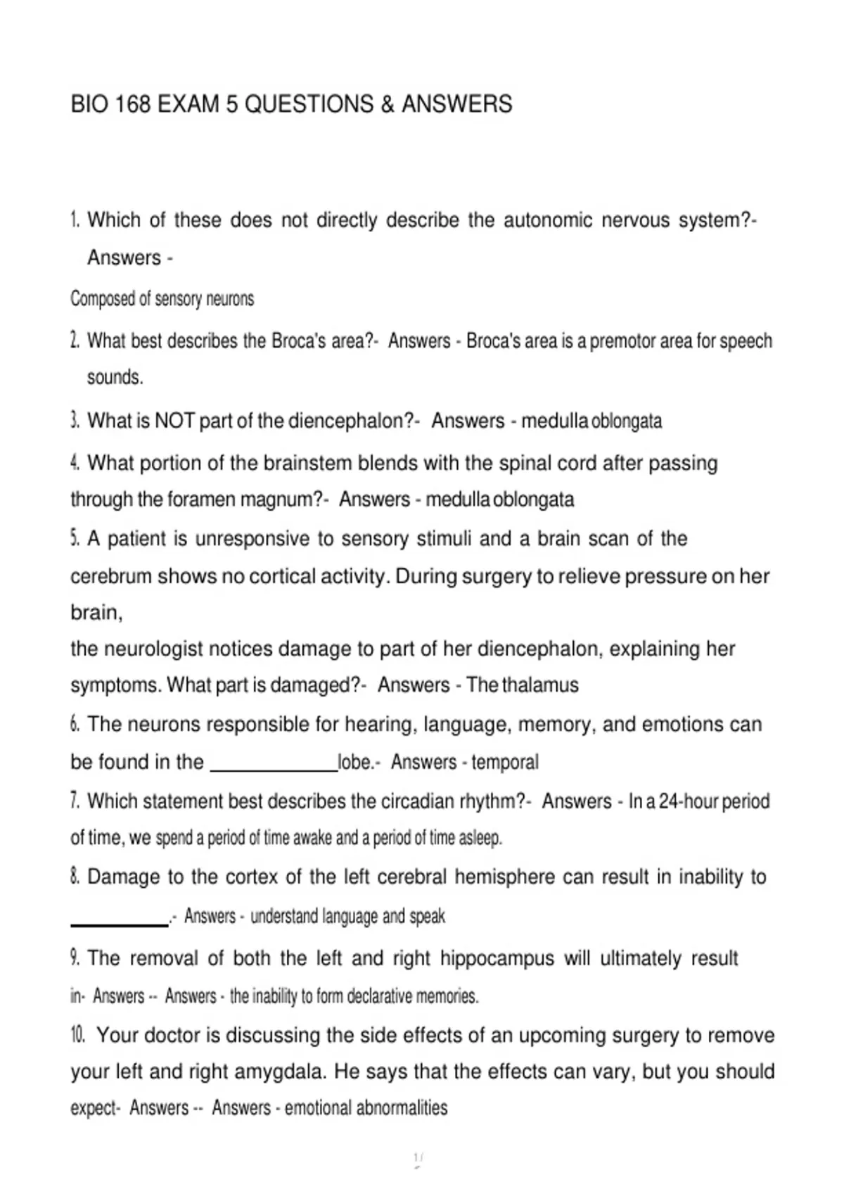 BIO 168 EXAM 5 QUESTIONS & ANSWERS