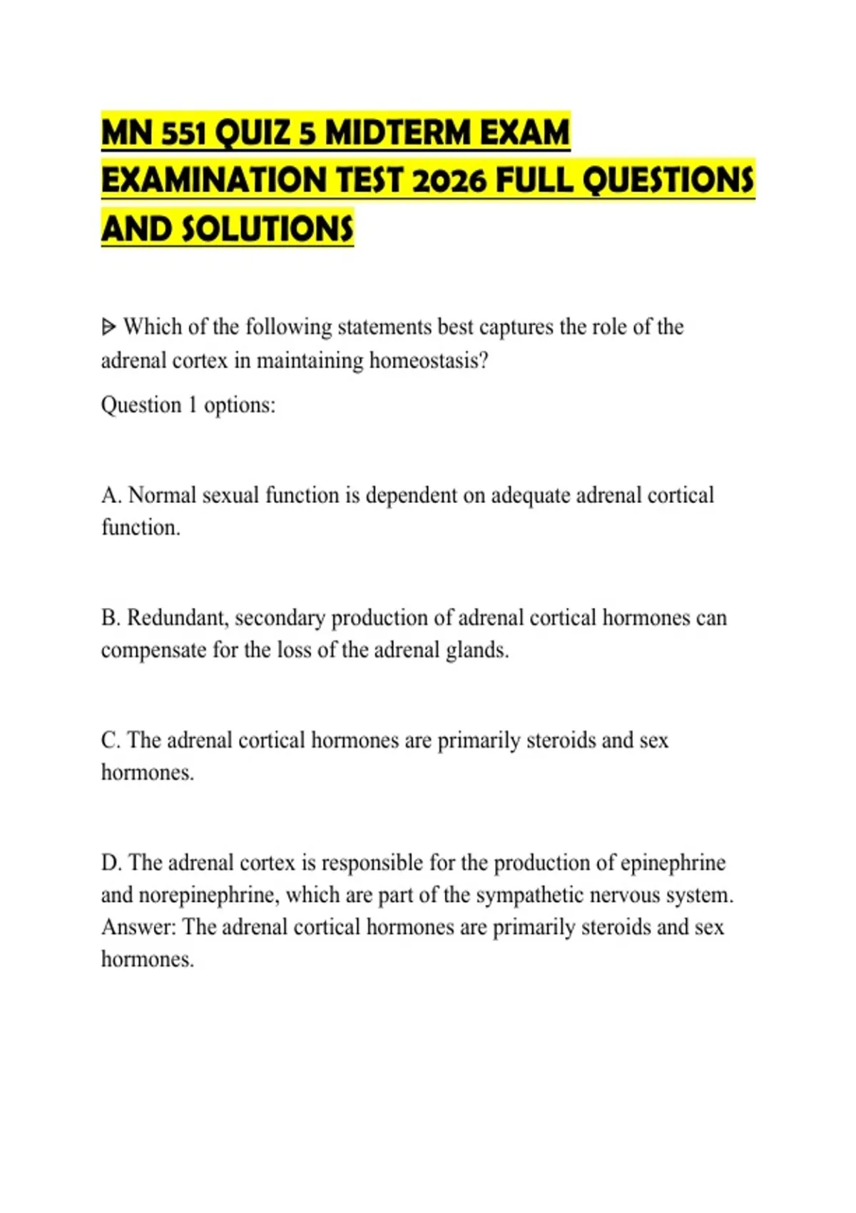 Answer: The adrenal cortical hormones are primarily steroids and sex