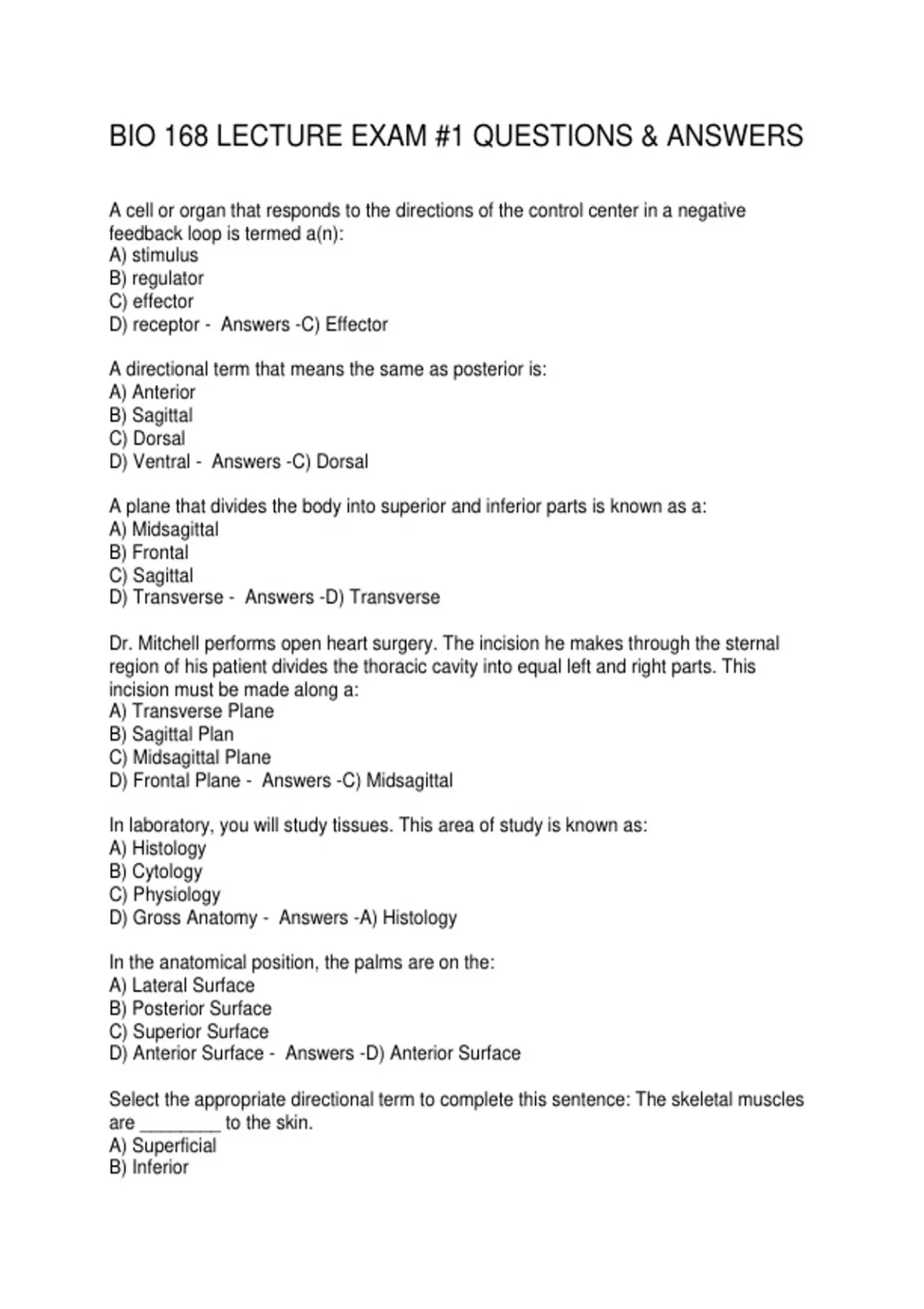 BIO 168 LECTURE EXAM #1 QUESTIONS & ANSWERS