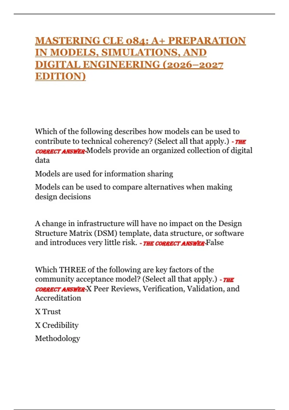MASTERING CLE 084: A+ PREPARATION IN MODELS, SIMUL