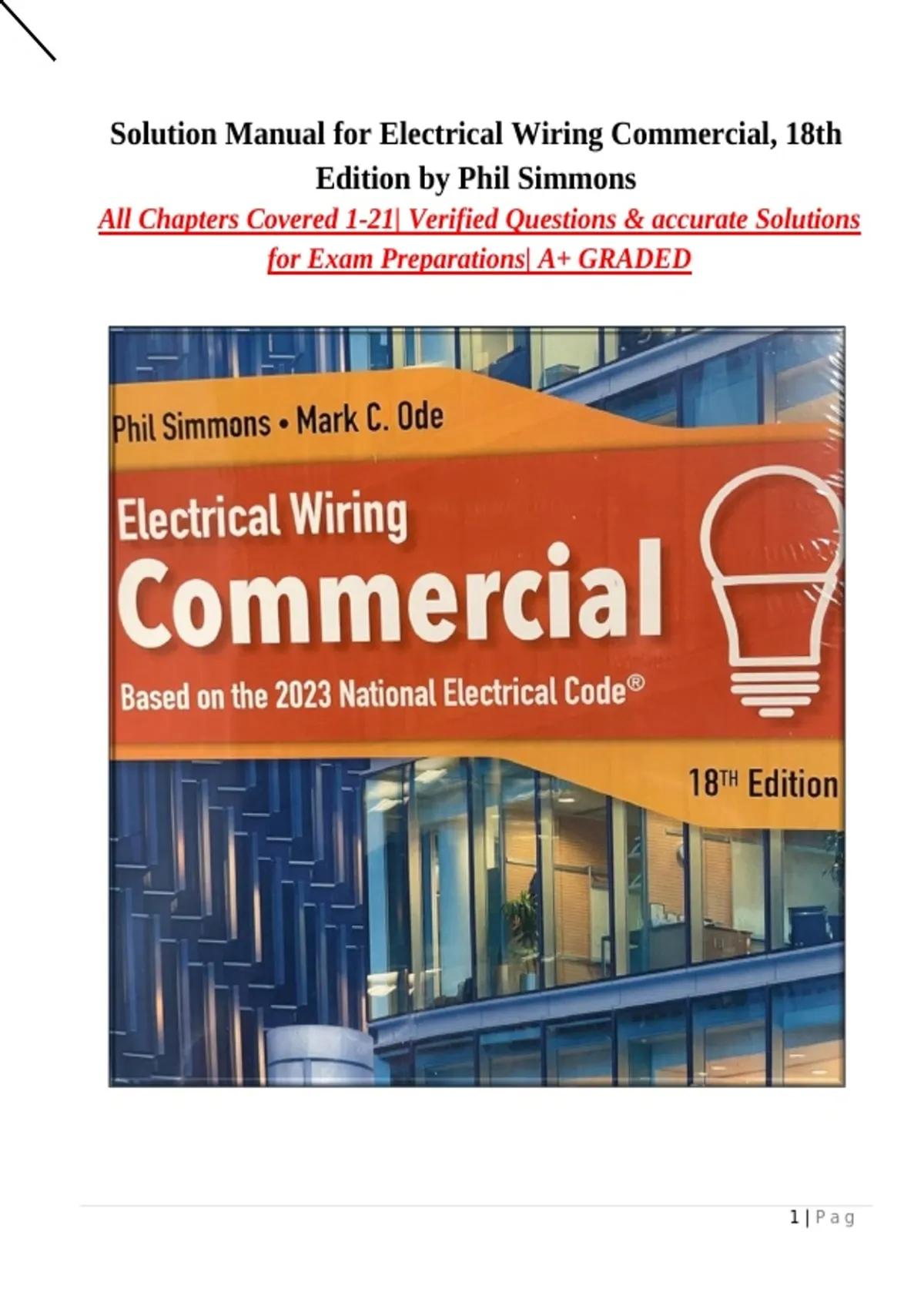 Solution and Answer Guide Electrical Wiring Commercial 18th Edition by Phil Simmons, Ray C. Mullin, Mark Ode