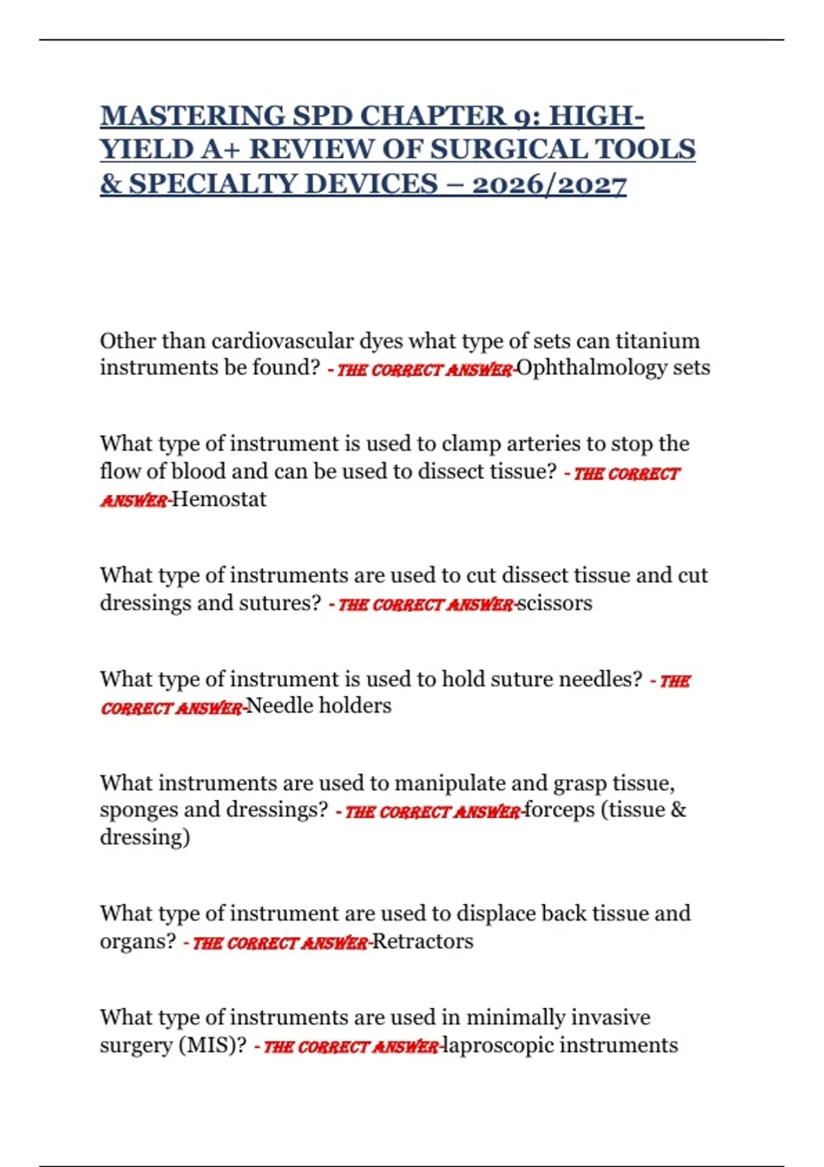 ACE SPD CHAPTER 9: A+ GUIDE TO SURGICAL INSTRUMENTS & SPECIALTY EQUIPMENT – 2026/2027