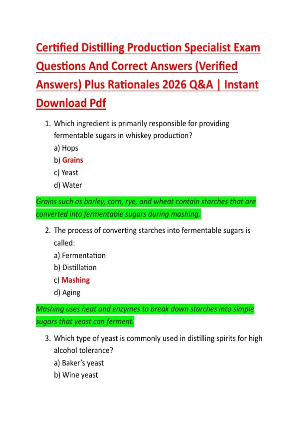 Certified Distilling Production Specialist Exam Questions And Correct Answers (Verified Answers) Plus Rationales 2026 Q&A | Instant Download Pdf