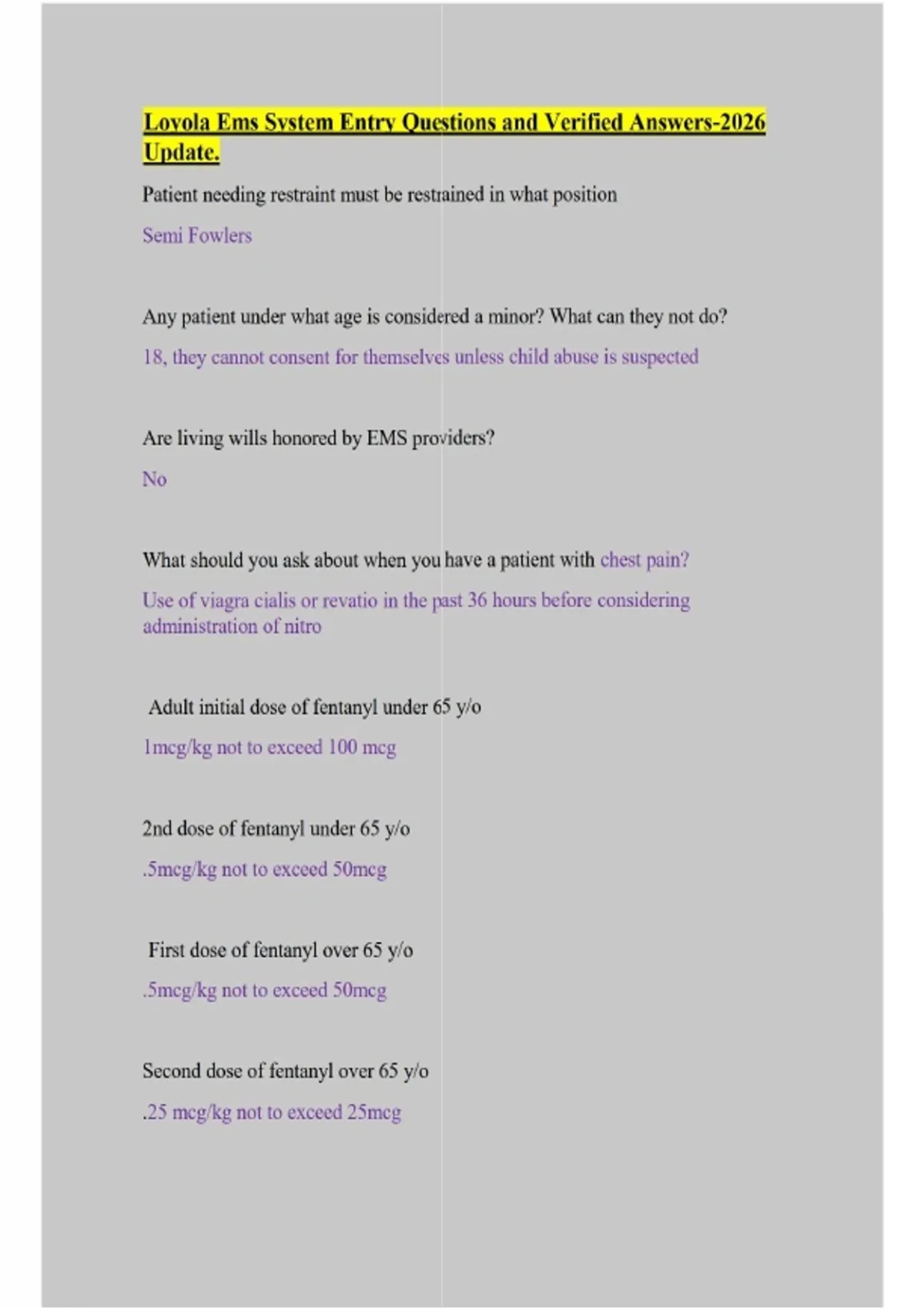 Loyola Ems System Entry Questions and Verified Answers-2026 Update.