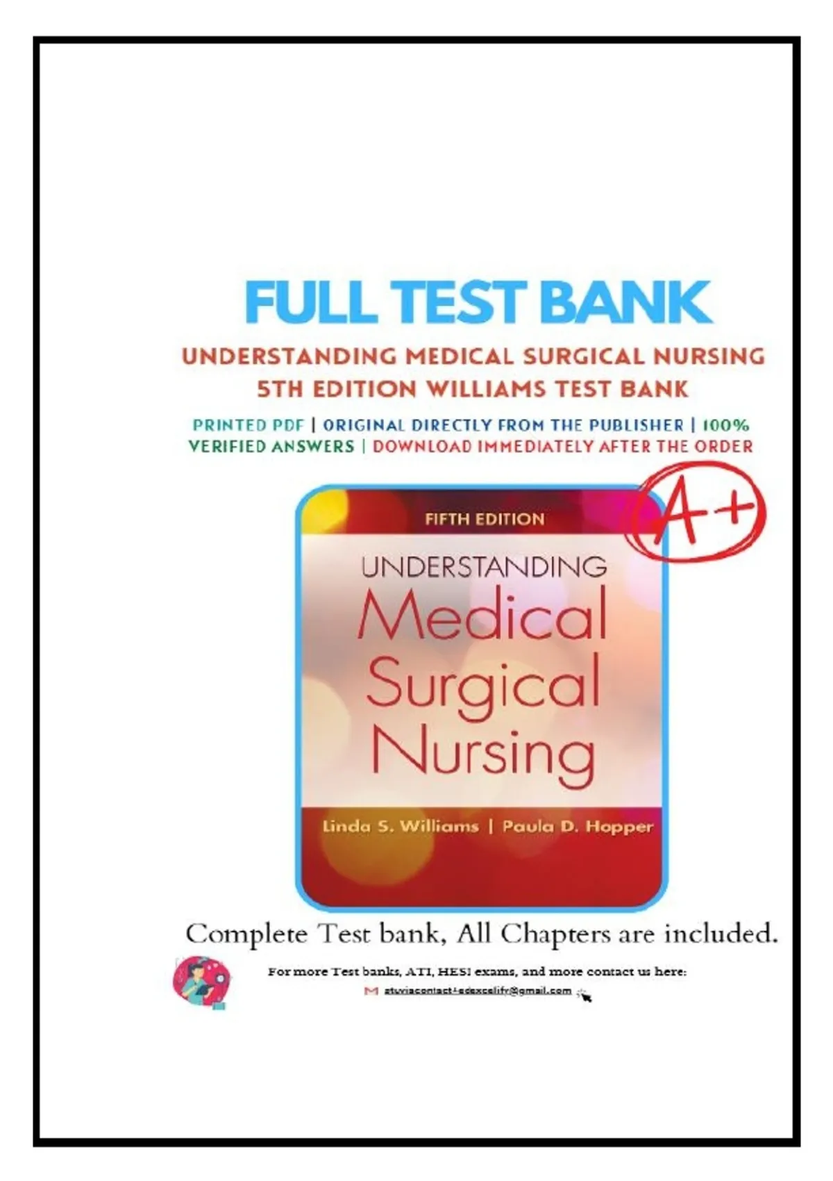 Test Bank for Understanding Medical Surgical Nursing 5th Edition by Williams, Linda; Hopper, Paula Chapter 1-57 Complete Guide