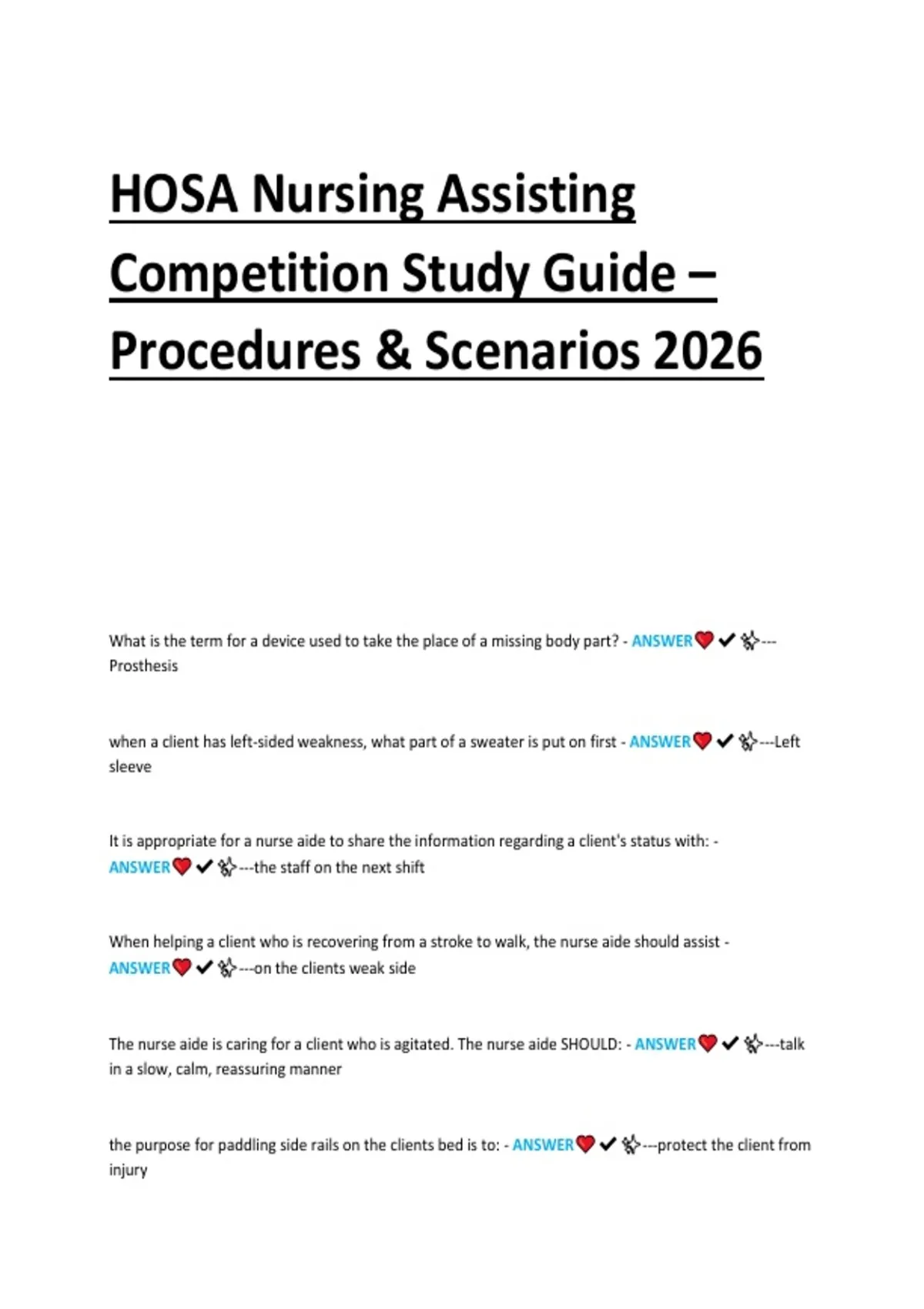 Comprehensive 2026 study guide for HOSA Nursing Assisting competitions. Covers essential nursing procedures, patient care techniques, infection control, vital signs, and clinical protocols. Includes practice scenarios, step-by-step walkthroughs, and tips to help students master skills and excel in HOSA competitions.
