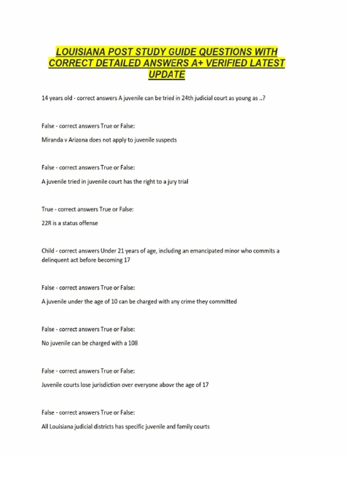LOUISIANA POST STUDY GUIDE QUESTIONS WITH CORRECT DETAILED ANSWERS A+ VERIFIED LATEST UPDATELOUISIANA POST STUDY GUIDE QUESTIONS WITH CORRECT DETAILED ANSWERS A+ VERIFIED LATEST UPDATELOUISIANA POST STUDY GUIDE QUESTIONS WITH CORRECT DETAILED ANSWERS A+ VERIFIED LATEST UPDATE