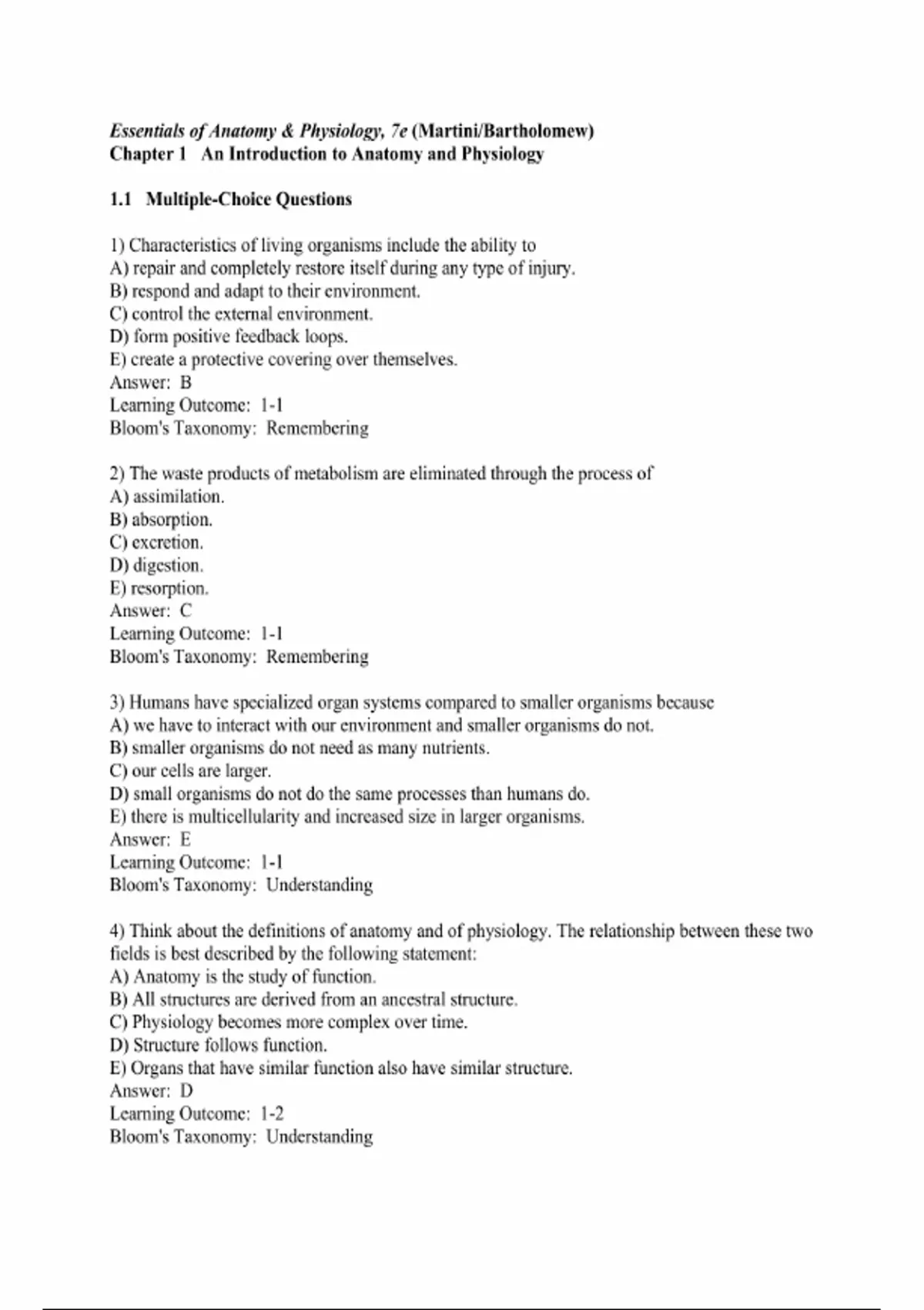 Essentials of Anatomy & Physiology – 7th Edition by Frederic H. Martini & Edwin F. Bartholomew | Complete Test Bank (Chapters 1–20)