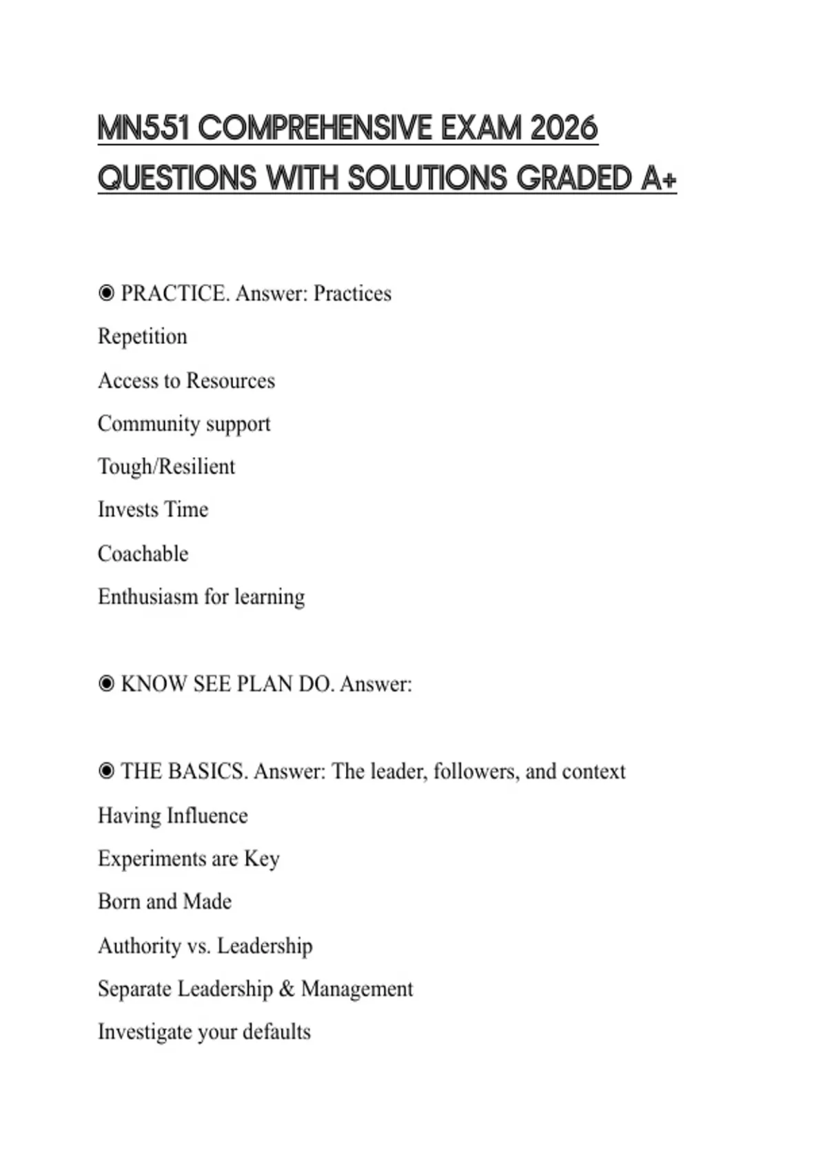 MN551 COMPREHENSIVE EXAM 2026 QUESTIONS WITH SOLUTIONS GRADED A+