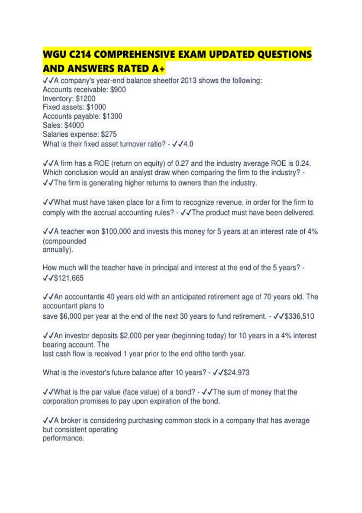 WGU C214 COMPREHENSIVE EXAM UPDATED QUESTIONS AND ANSWERS RATED A+