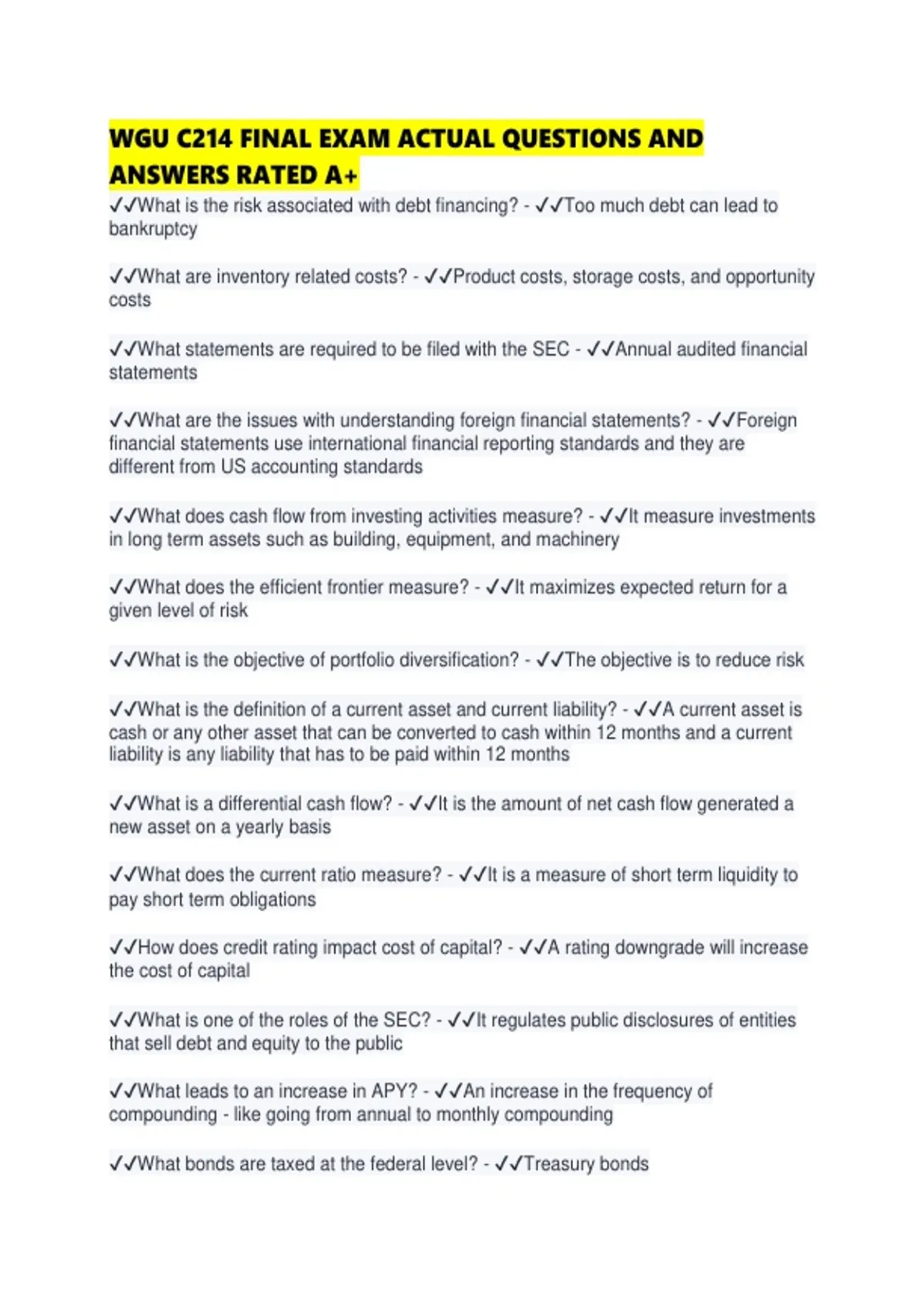 WGU C214 FINAL EXAM ACTUAL QUESTIONS AND ANSWERS RATED A+