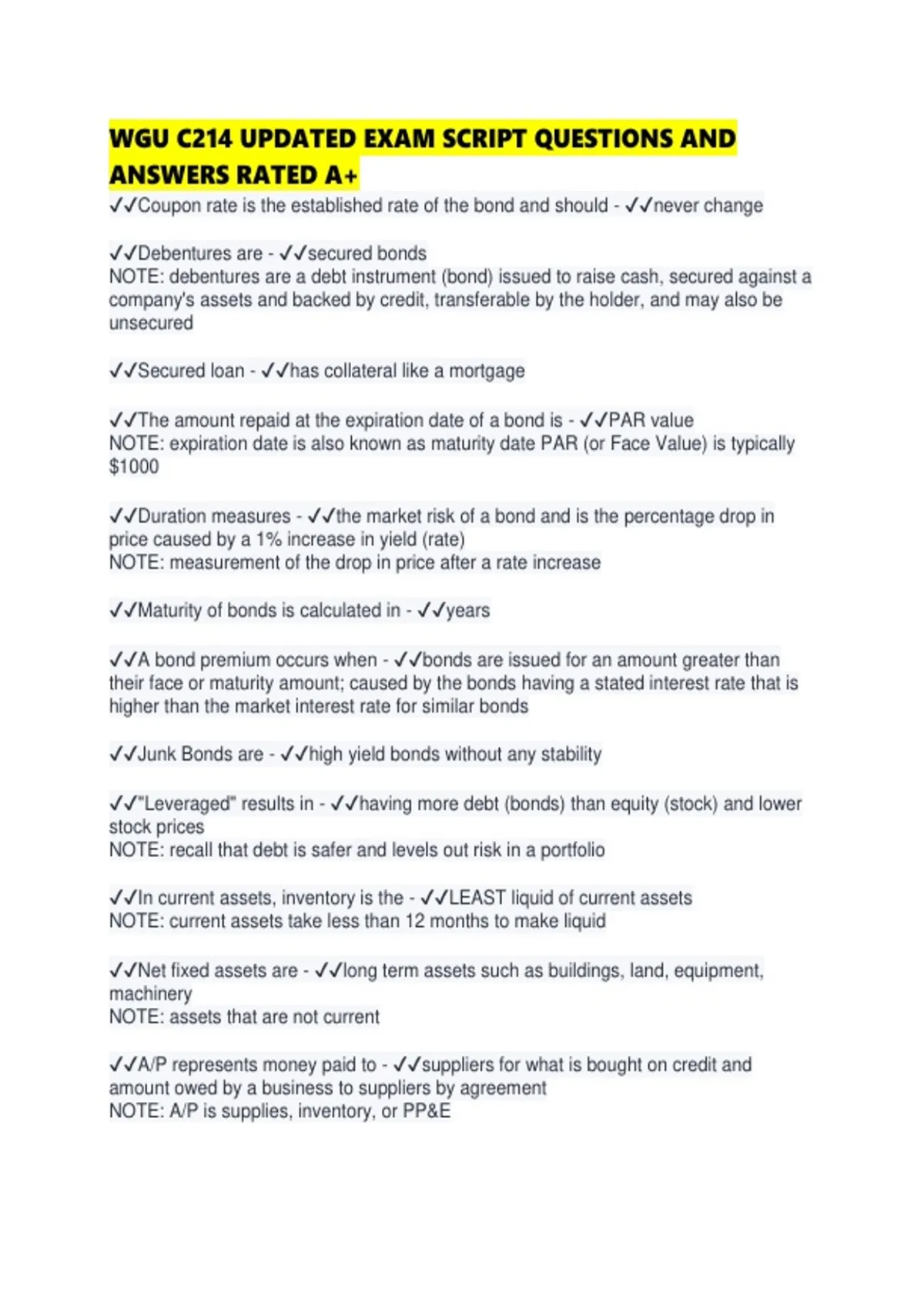 WGU C214 UPDATED EXAM SCRIPT QUESTIONS AND ANSWERS RATED A+