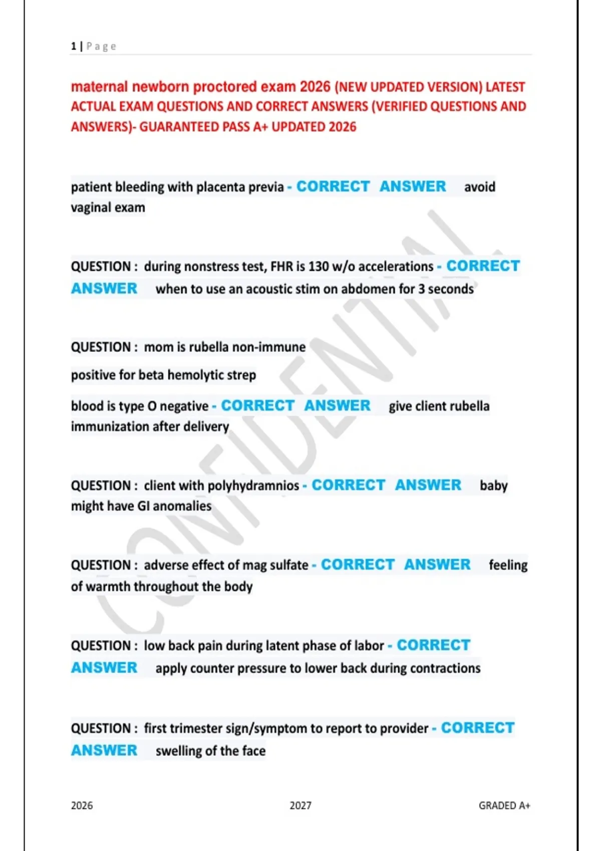 Prepare confidently for the ATI Maternal-Newborn Practice Exam with updated 2026 questions designed to reinforce maternal and newborn nursing concepts. This resource includes original, high-quality practice questions with accurate answers and clear rationales to strengthen assessment, patient care, and test-taking skills. Ideal for nursing students seeking focused review, improved confidence, and exam readiness for ATI Maternal-Newborn assessments.