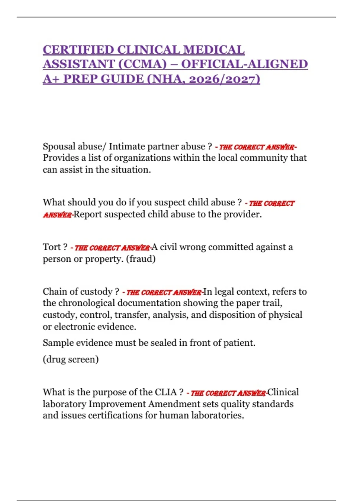 What is the purpose of the CLIA ? - THE CORRECT ANSWER-Clinical