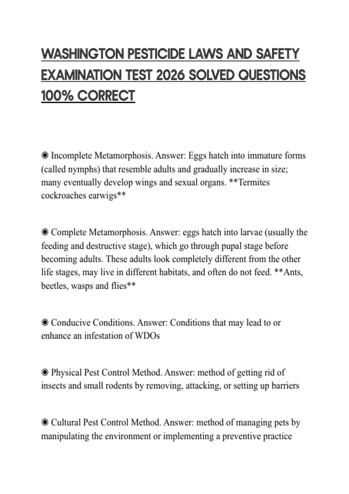 ,◉ Chemical Pest Control Method. Answer: method to destroy or