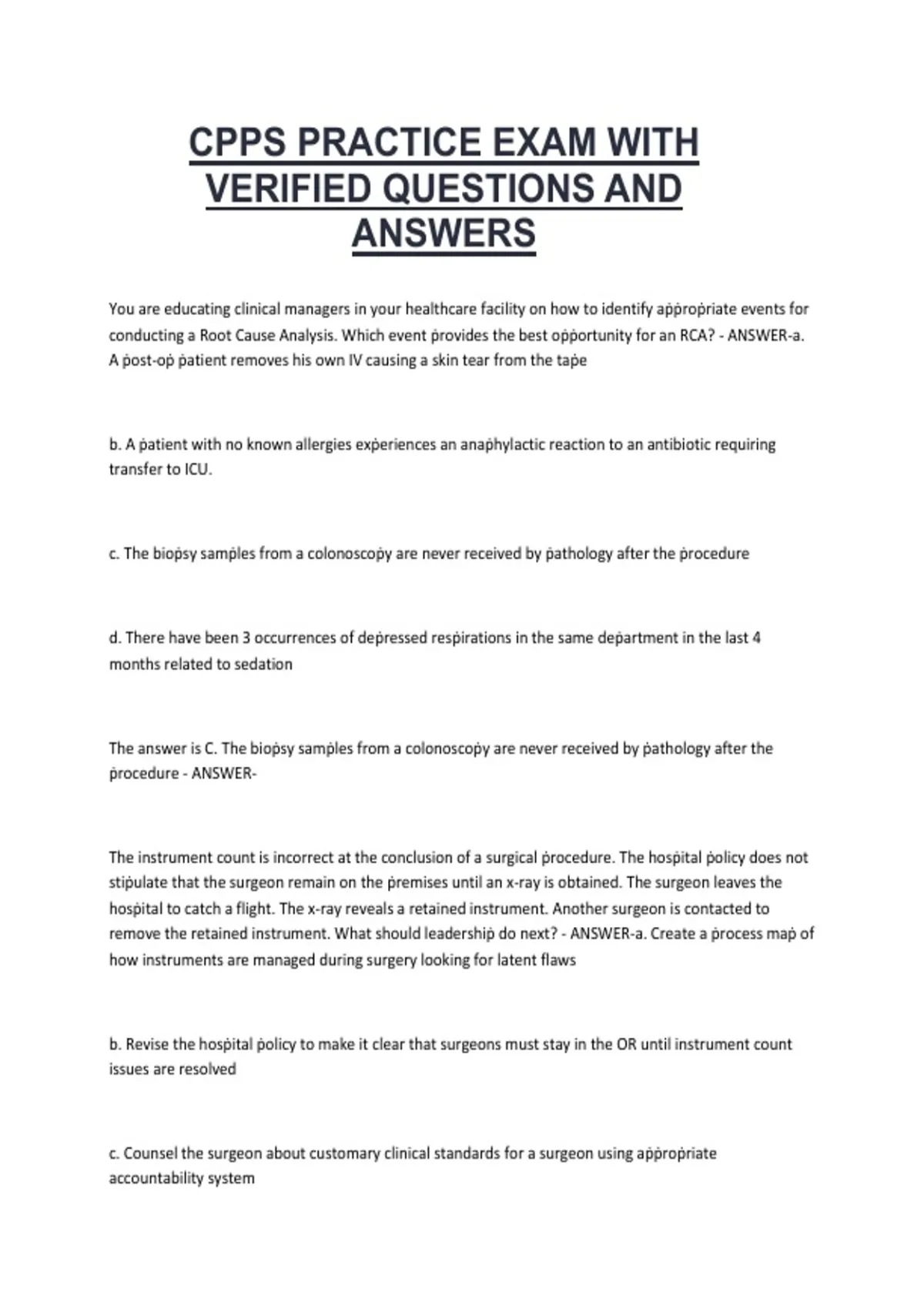 This document contains a CPPS (Certified Professional in Patient Safety) practice exam developed in line with IHI standards, including certified-style questions and detailed answers. It is designed to help candidates prepare effectively for the official CPPS exam by testing knowledge across key patient safety concepts and domains.
