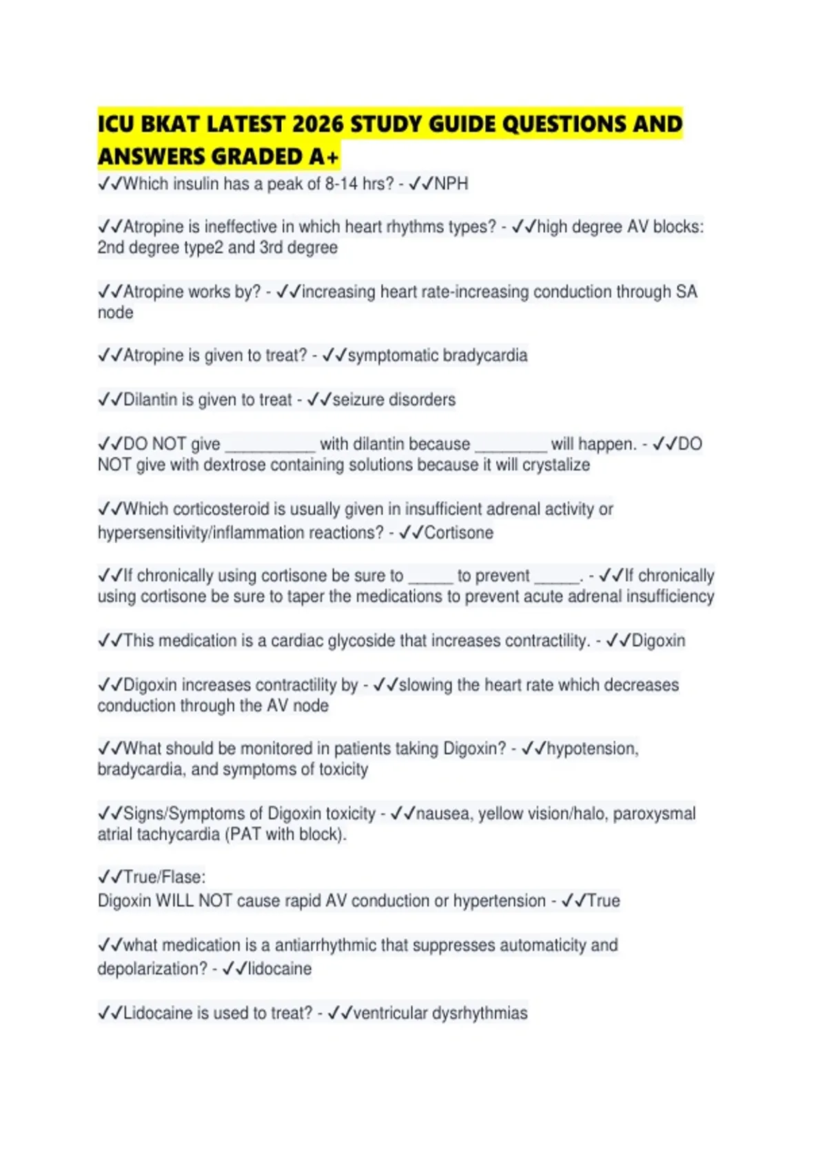 ICU BKAT LATEST 2026 STUDY GUIDE QUESTIONS AND ANSWERS GRADED A+