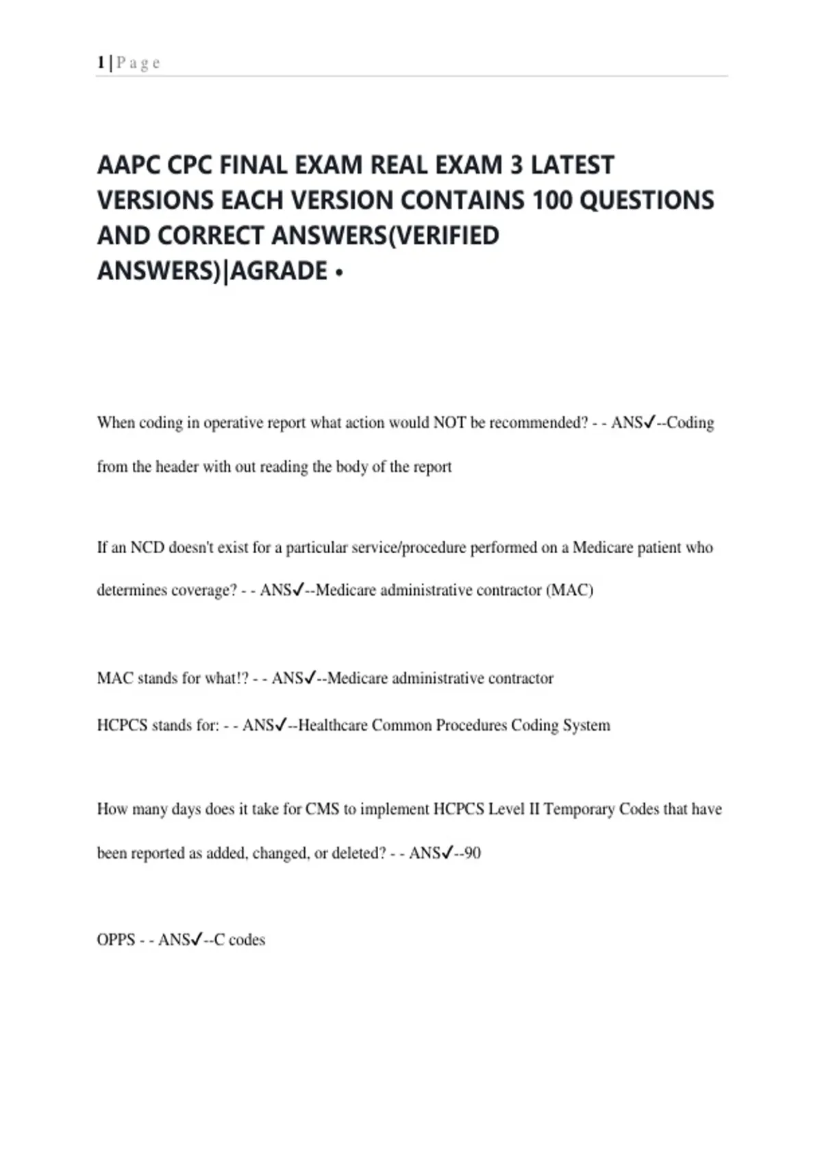 AAPC CPC FINAL EXAM REAL EXAM 3 LATEST