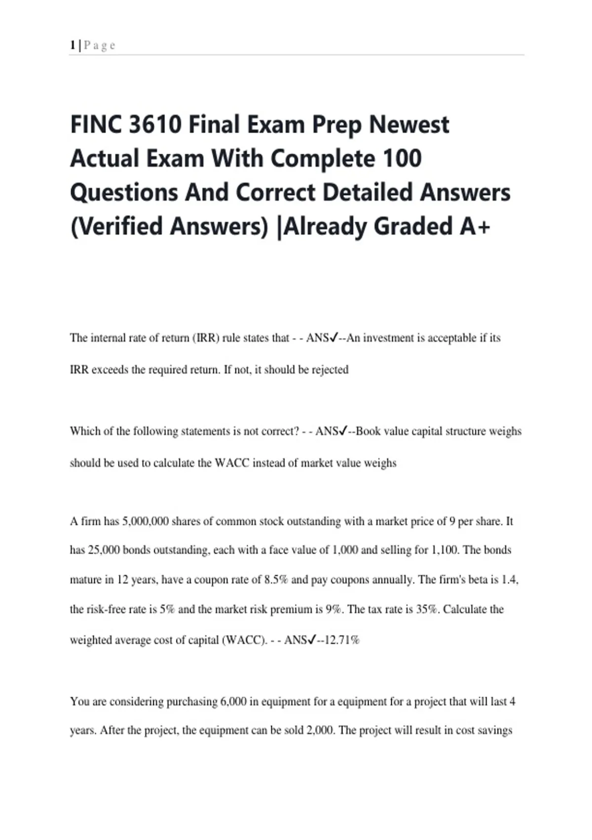 The internal rate of return (IRR) rule states that - - ANS✔️--An investment is acceptable if its