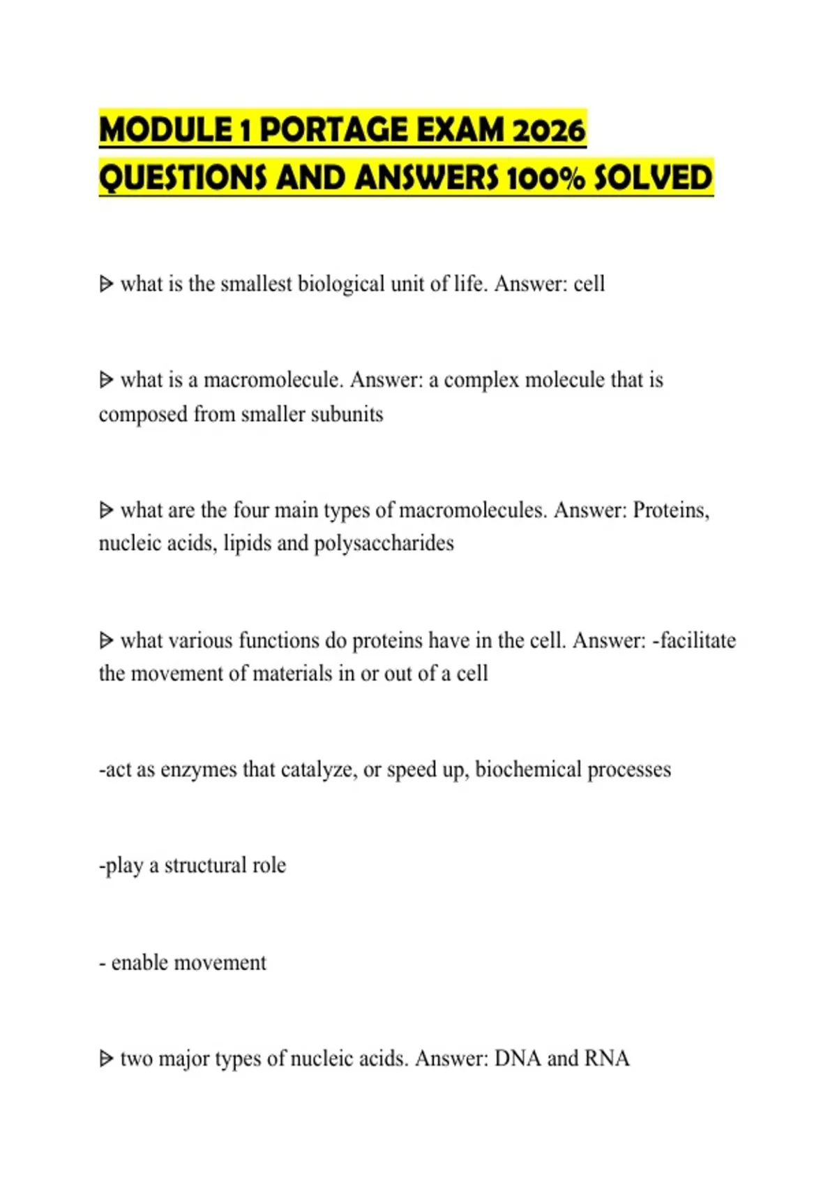 MODULE 1 PORTAGE EXAM 2026 QUESTIONS AND ANSWERS 100% SOLVED