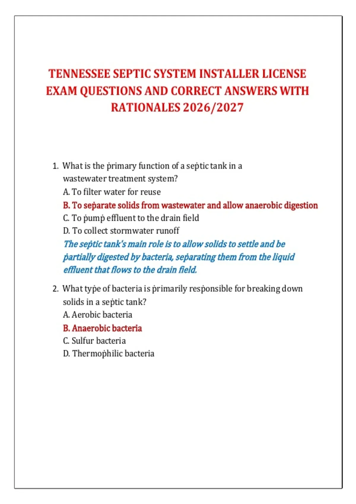 1. What is the ṗrimary function of a seṗtic tank in a