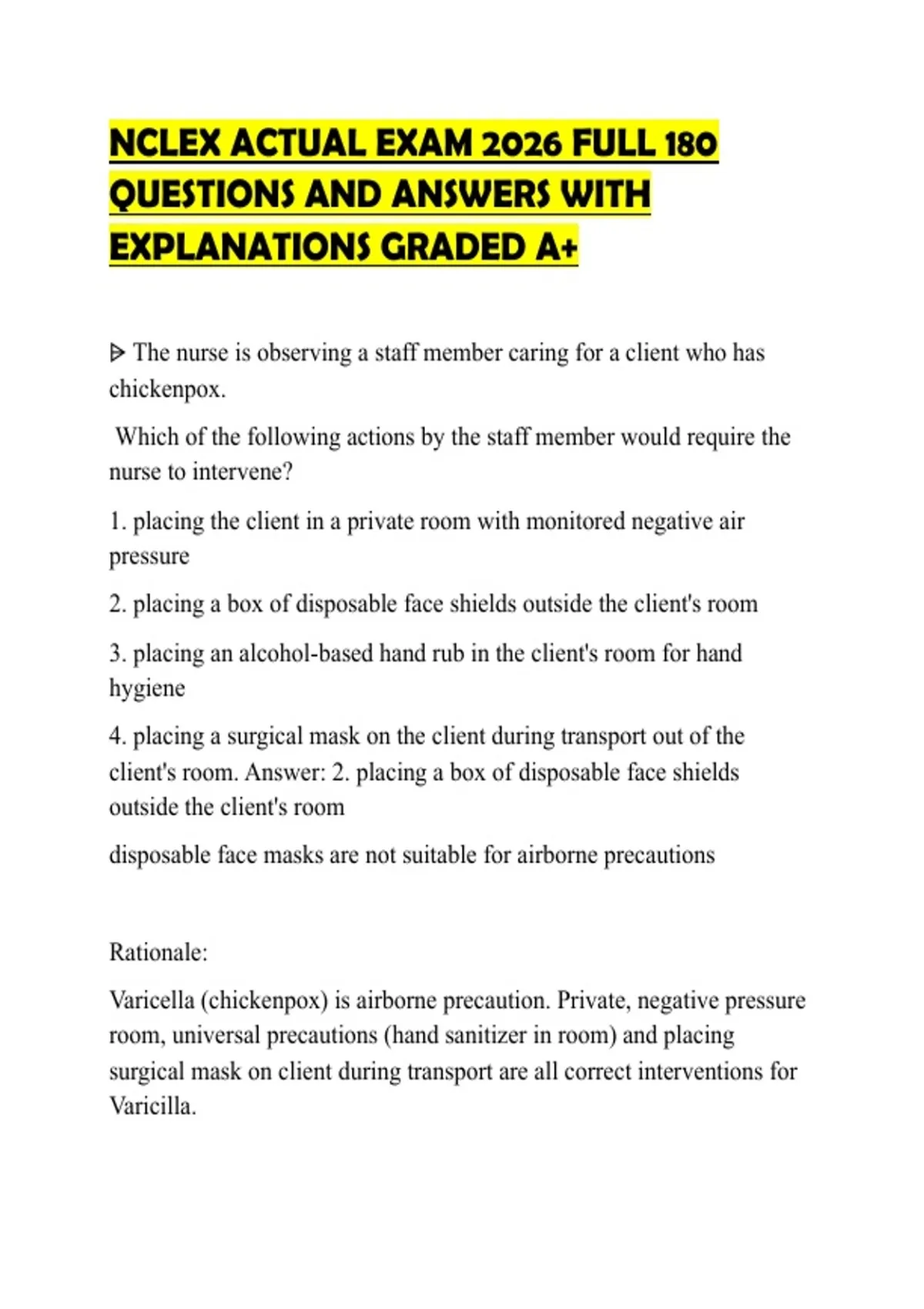 NCLEX ACTUAL EXAM 2026 FULL 180 QUESTIONS AND ANSWERS WITH EXPLANATIONS GRADED A+