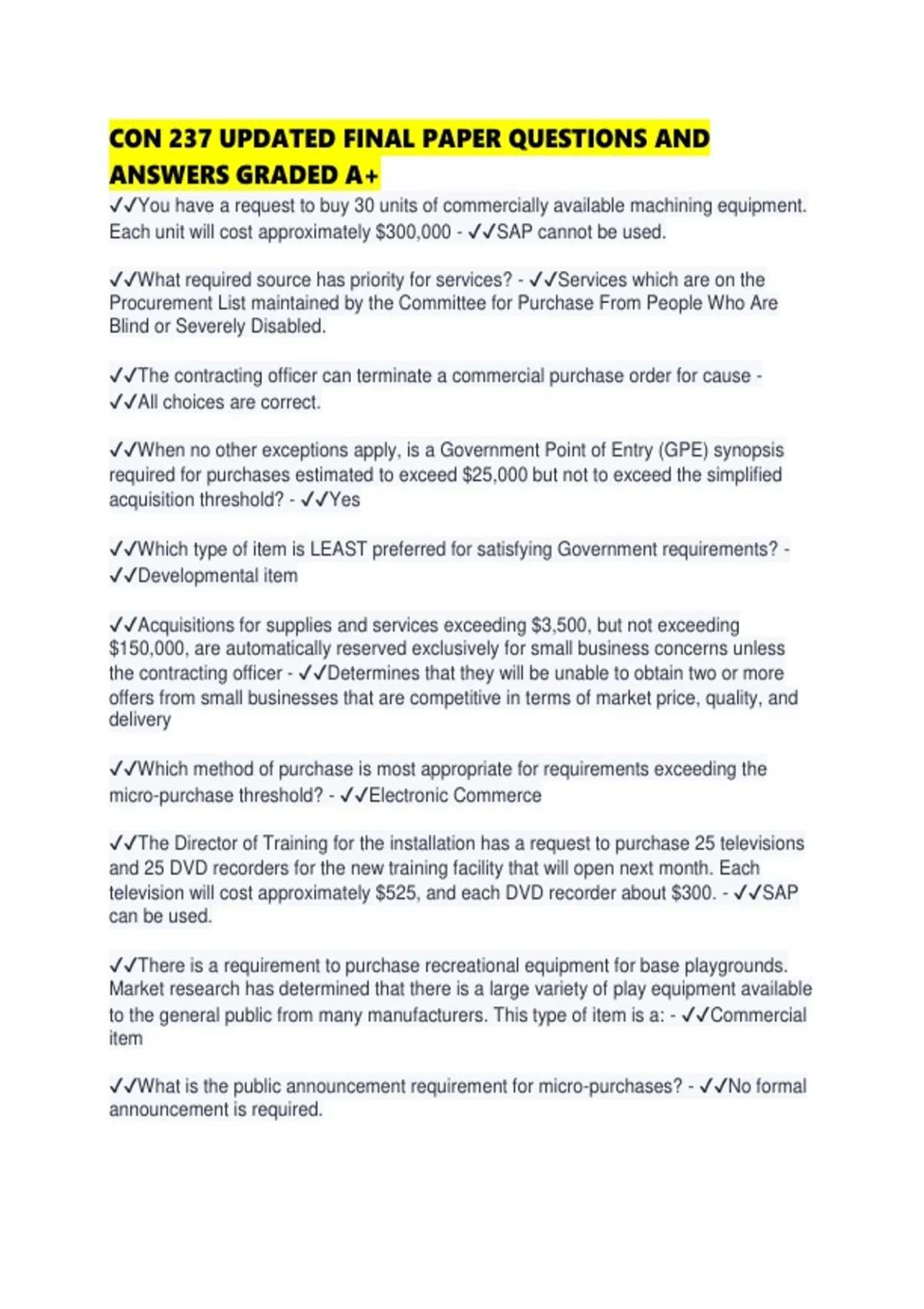 CON 237 UPDATED FINAL PAPER QUESTIONS AND ANSWERS GRADED A+