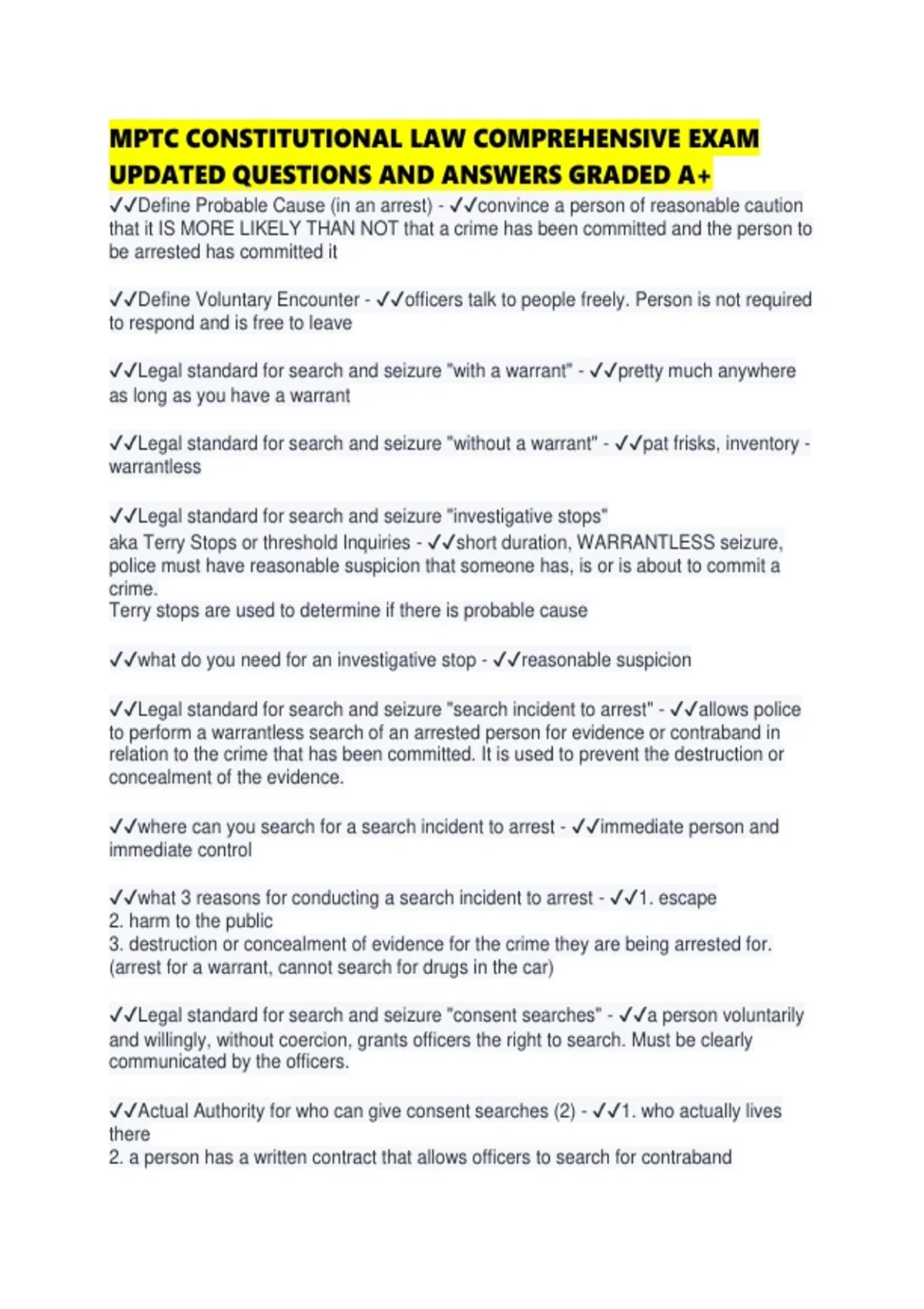 MPTC CONSTITUTIONAL LAW COMPREHENSIVE EXAM UPDATED QUESTIONS AND ANSWERS GRADED A+