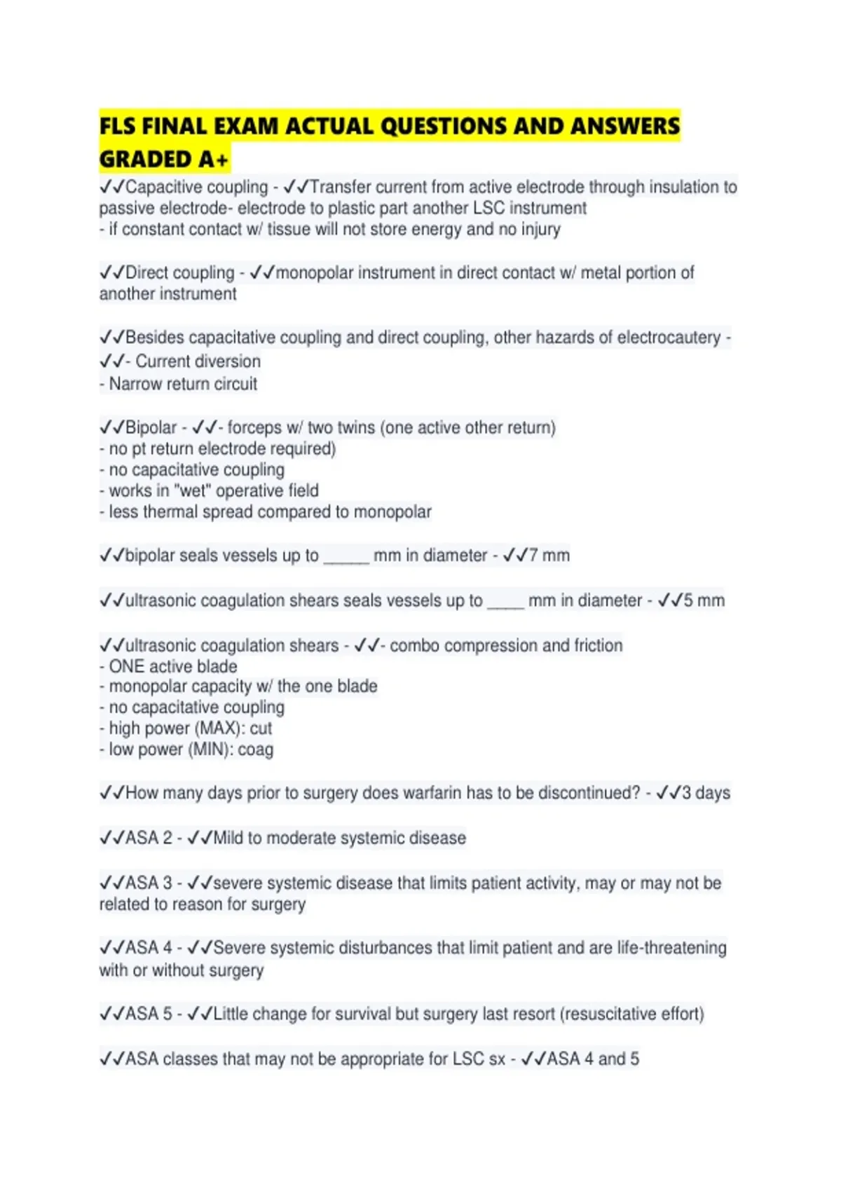 FLS FINAL EXAM ACTUAL QUESTIONS AND ANSWERS GRADED A+