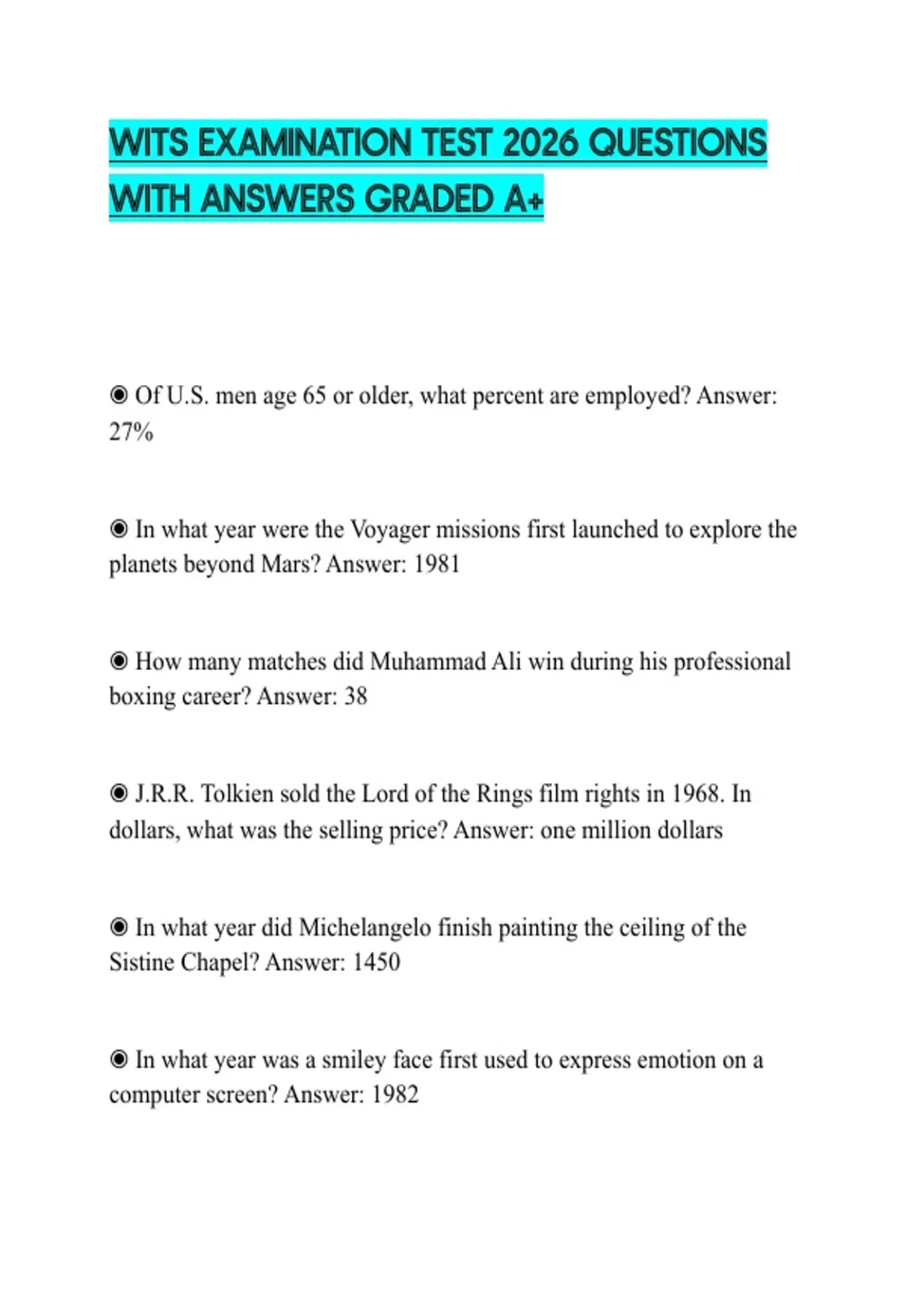 WITS EXAMINATION TEST 2026 QUESTIONS WITH ANSWERS GRADED A+