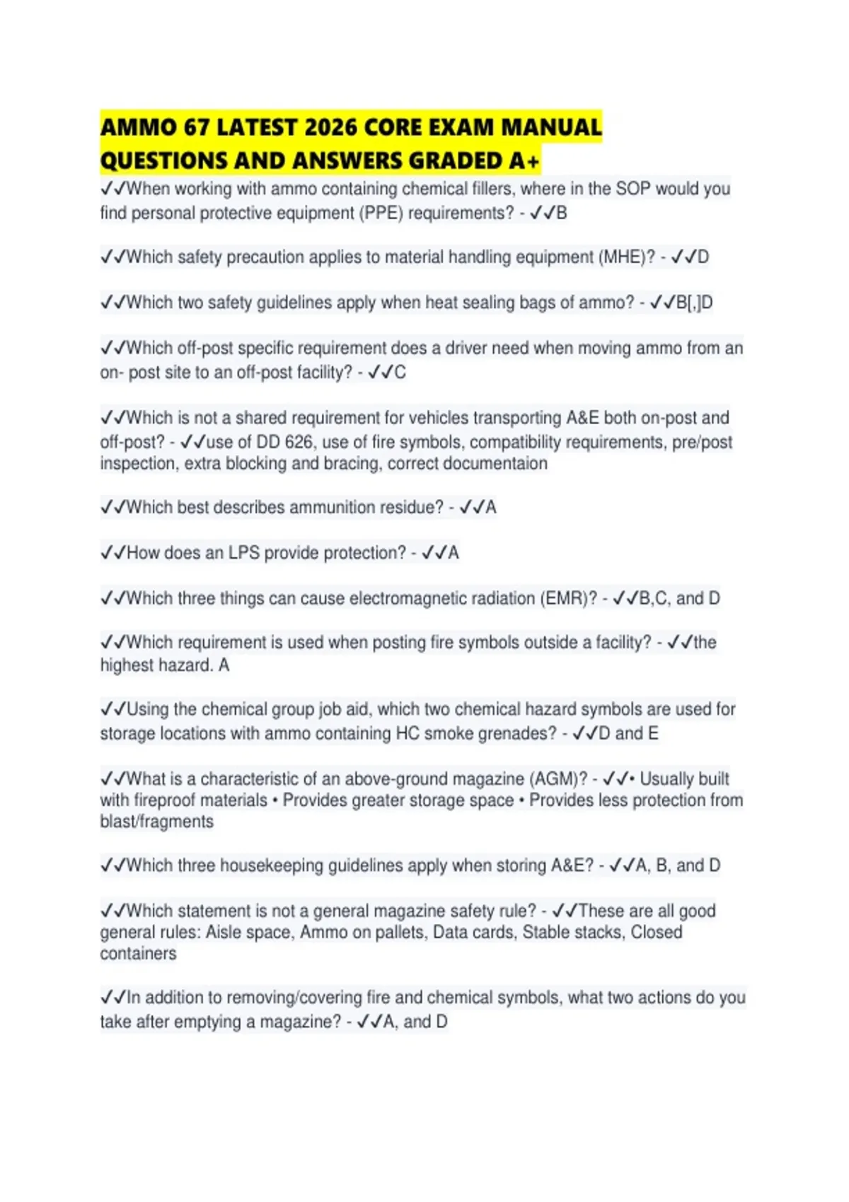✔✔Which hazard is most damaging to ammunition? - ✔✔Fire and excessive heat