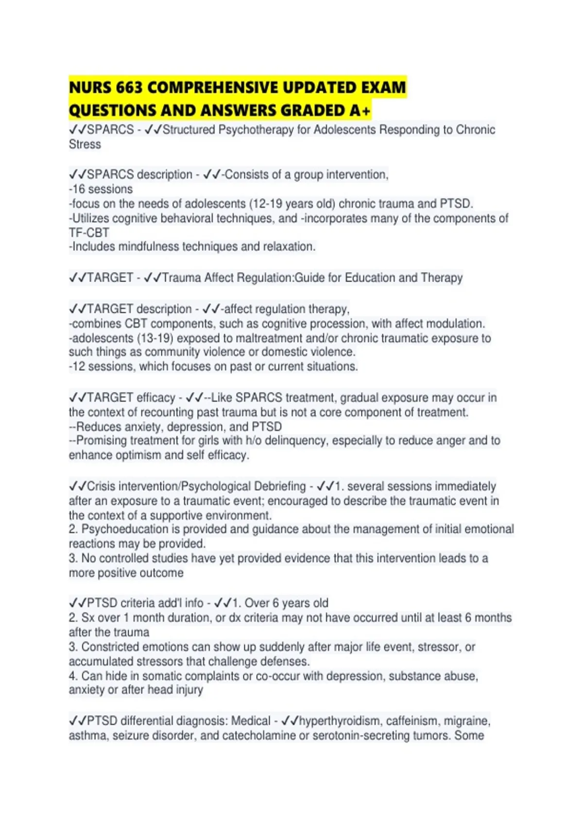 ✔✔PTSD criteria add'l info - ✔✔1. Over 6 years old