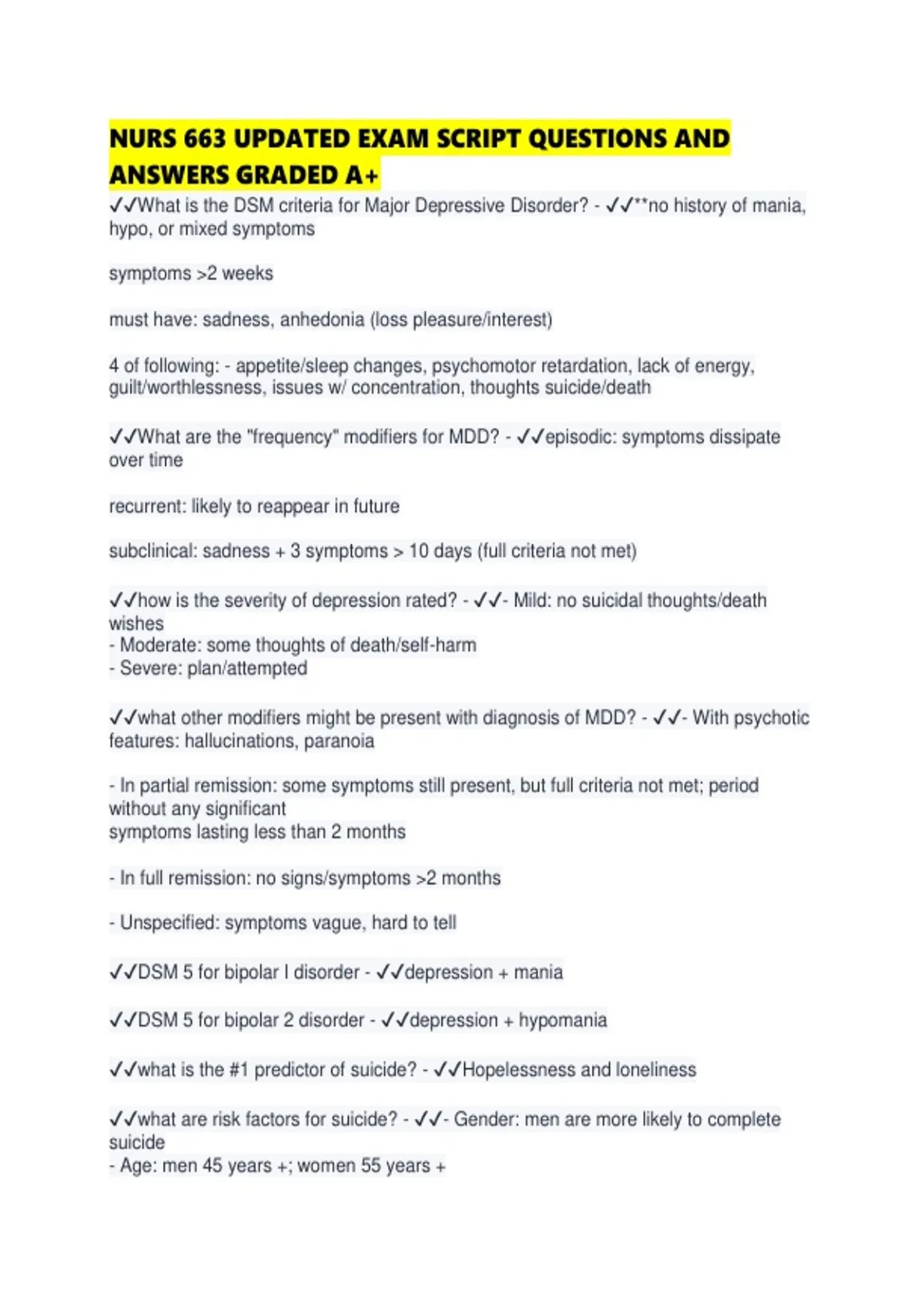 NURS 663 UPDATED EXAM SCRIPT QUESTIONS AND