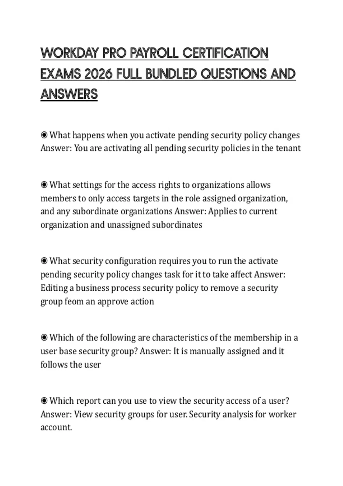 WORKDAY PRO PAYROLL CERTIFICATION EXAMS 2026 FULL BUNDLED QUESTIONS AND ANSWERS
