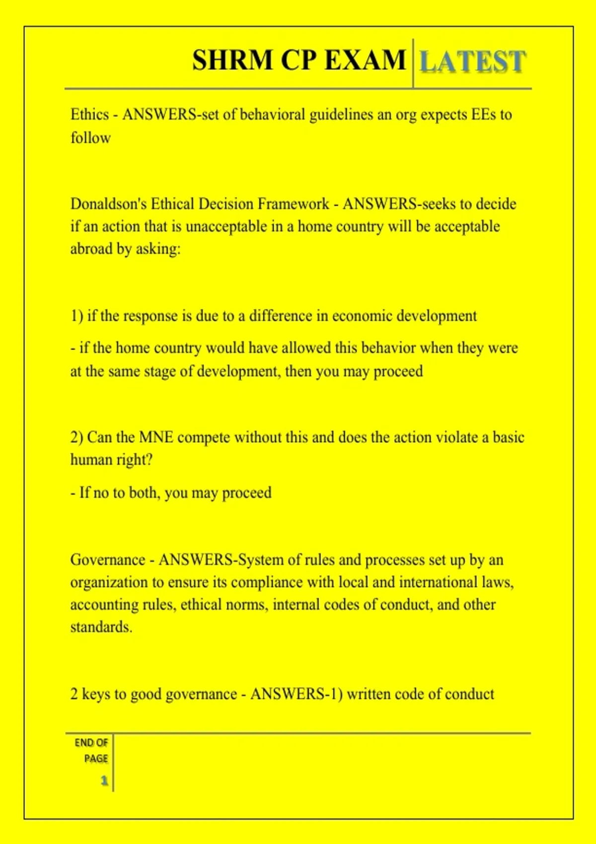 2 keys to good governance - ANSWERS-1) written code of conduct