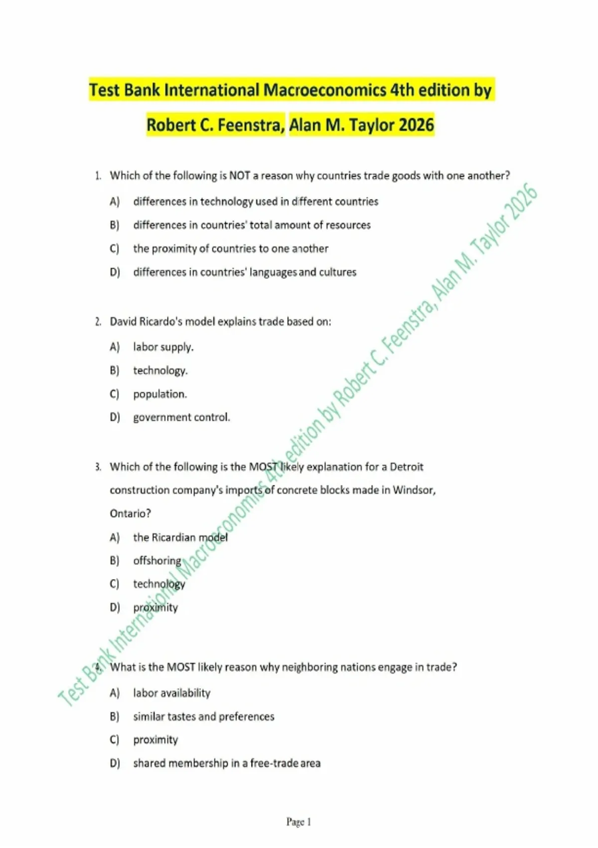 Test Bank International Macroeconomics 4th edition by Robert C. Feenstra, Alan M. Taylor 2026.