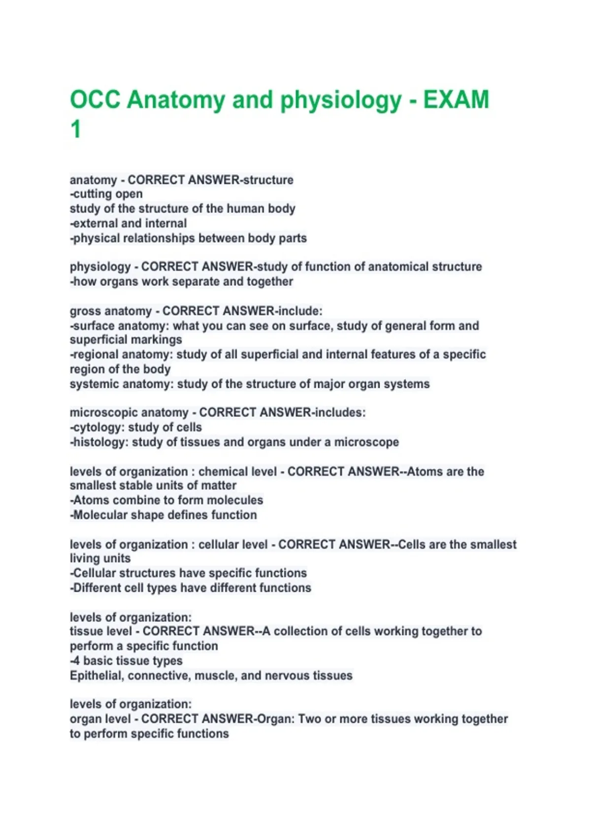 organ level - CORRECT ANSWER-Organ: Two or more tissues working together