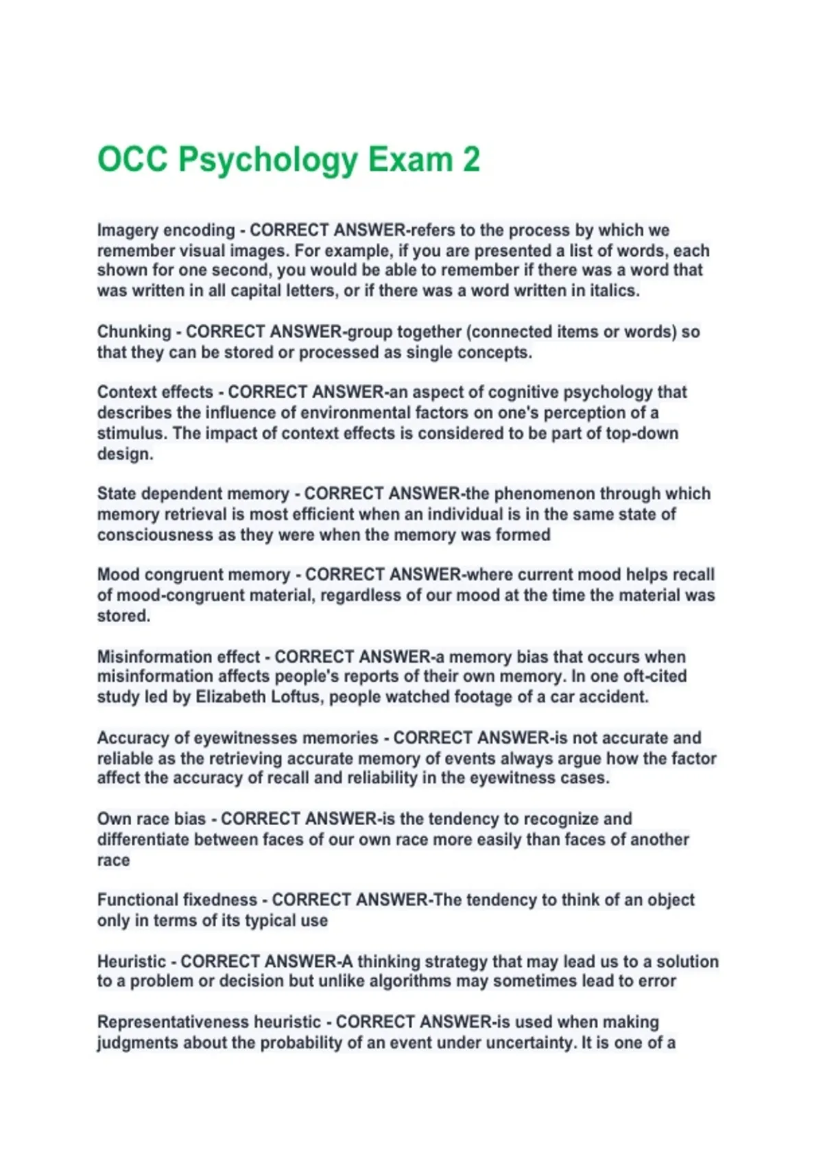 Context effects - CORRECT ANSWER-an aspect of cognitive psychology that