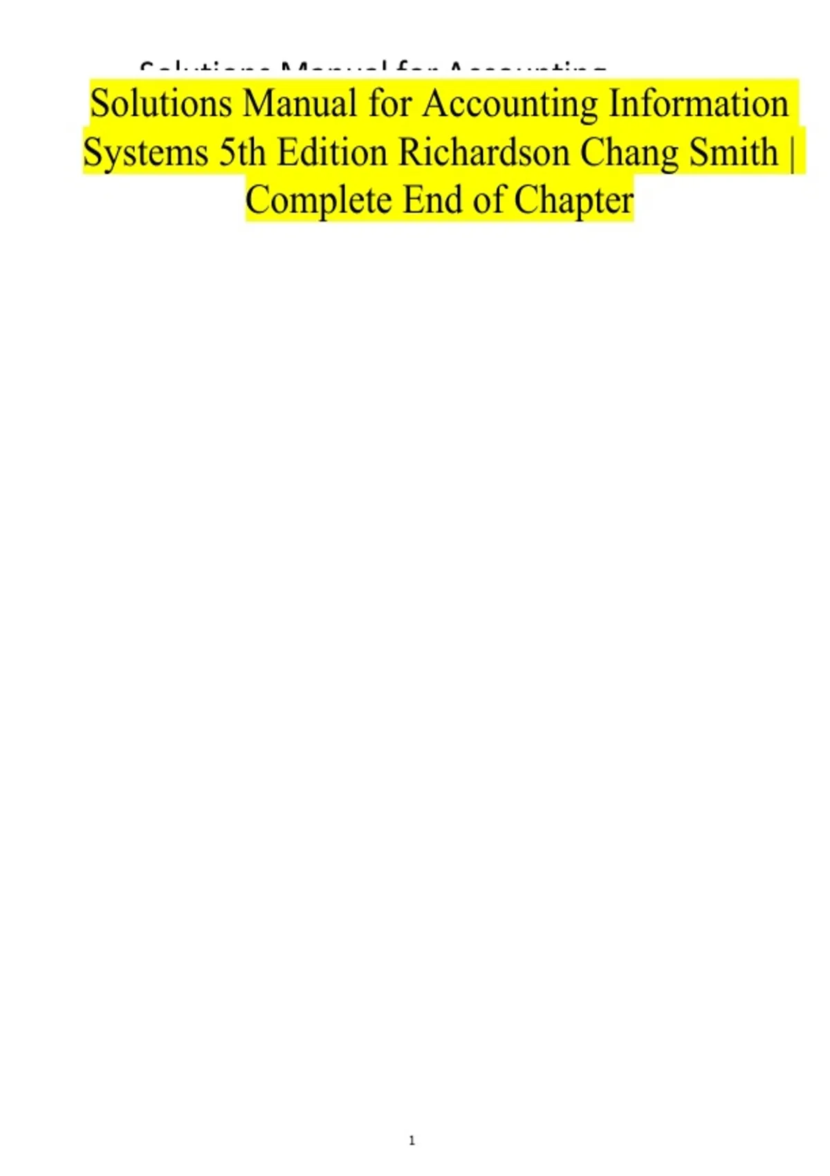 Complete end-of-chapter solutions manual for Accounting Information Systems, 5th Edition by Richardson, Chang & Smith. Features detailed answers for AIS problems, data flow diagrams, internal controls, and ERP case studies—essential for exams and mastering IT auditing and system design.