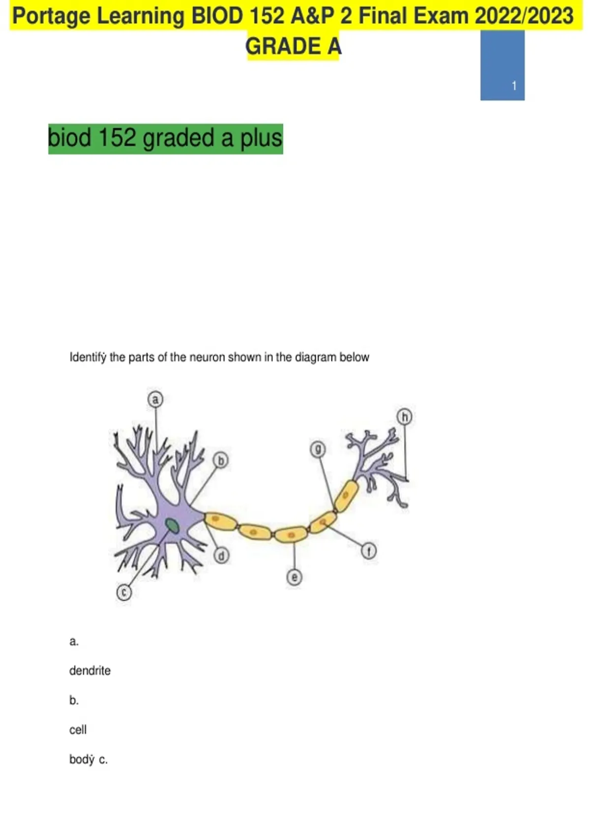 ,Portage Learning / BIOD 152 A & P 2 studẏ guide for final exam.