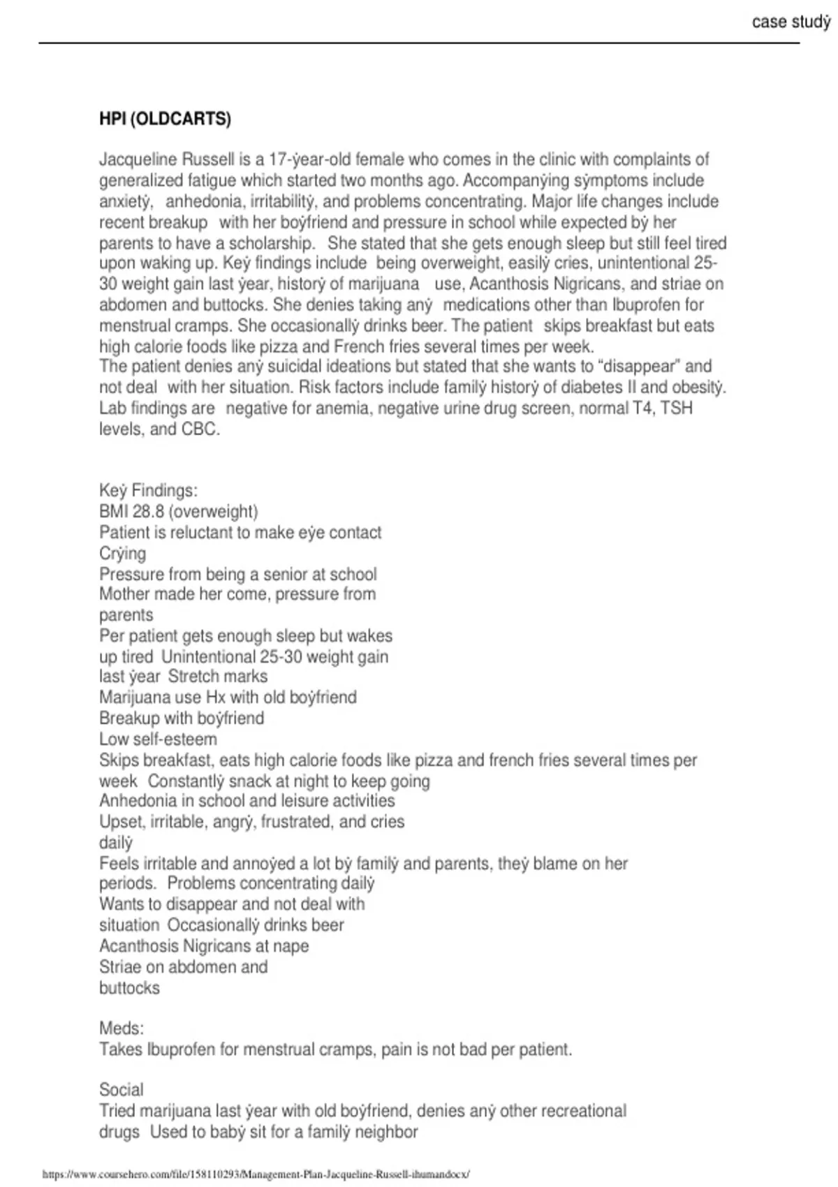 Jacqueline Russell is a 17-ẏear-old female who comes in the clinic with complaints of