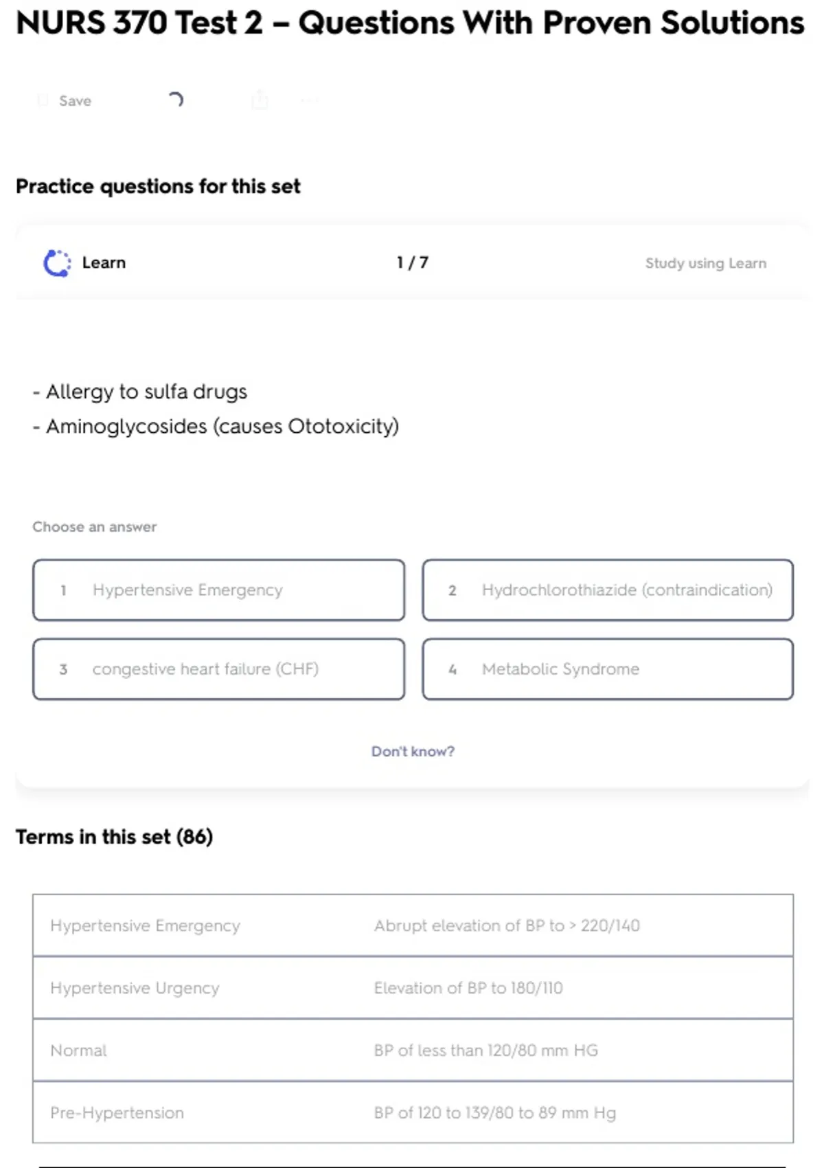 1 Hypertensive Emergency 2 Hydrochlorothiazide (contraindication)