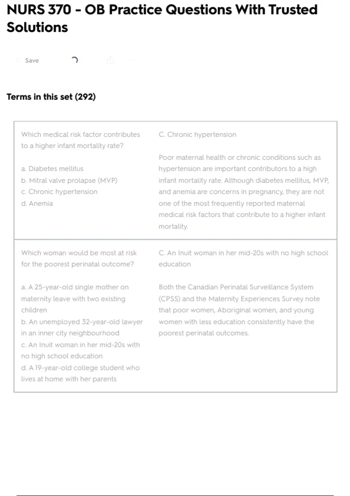 NURS 370 - OB Practice Questions With Trusted Solutions