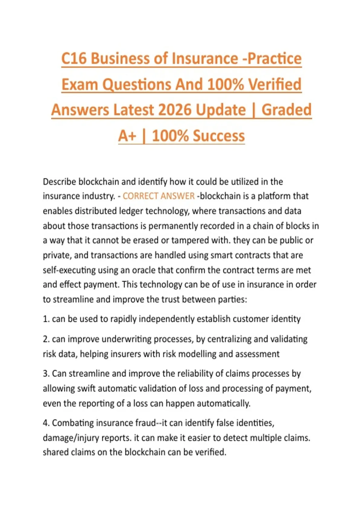 insurance industry. - CORRECT ANSWER -blockchain is a platform that