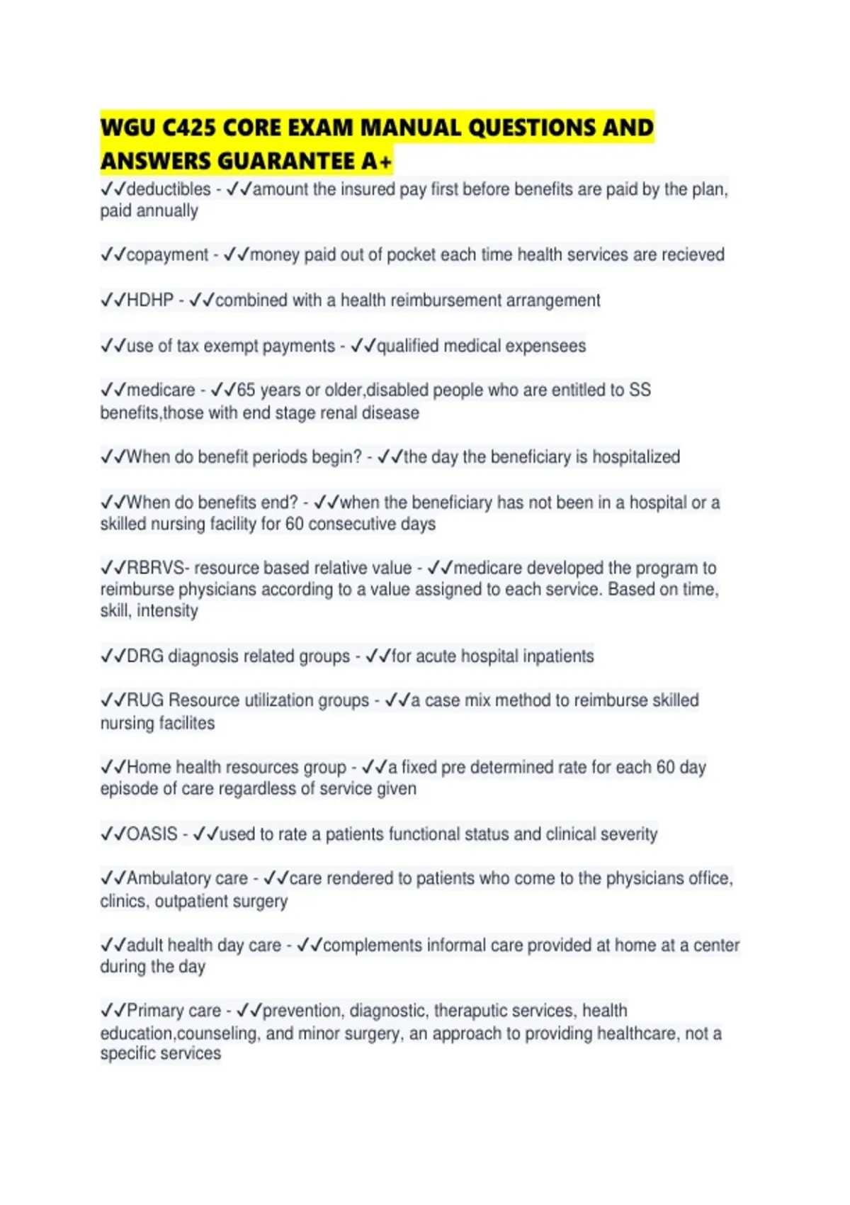 WGU C425 CORE EXAM MANUAL QUESTIONS AND ANSWERS GUARANTEE A.pdf
