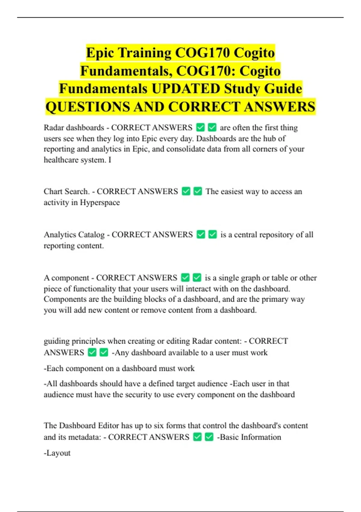 ANSWERS -Any dashboard available to a user must work