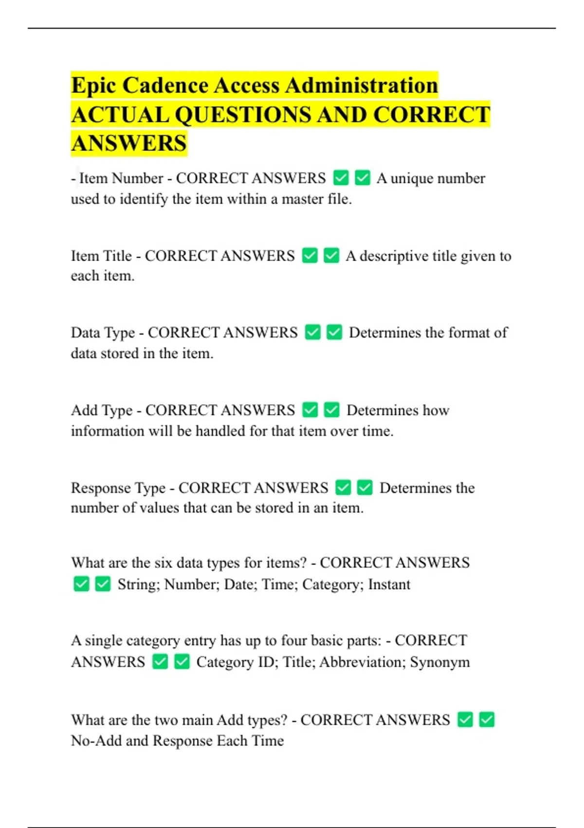 CORRECT ANSWERS Chronicles is Epic's database