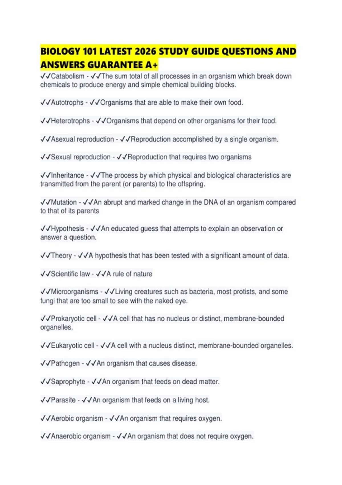 ✔✔Pathogen - ✔✔An organism that causes disease.