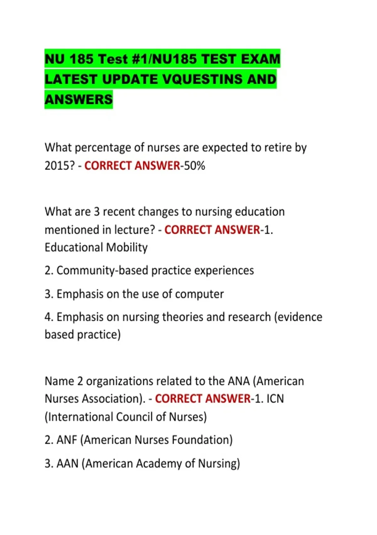 Nurses Association). - CORRECT ANSWER-1. ICN