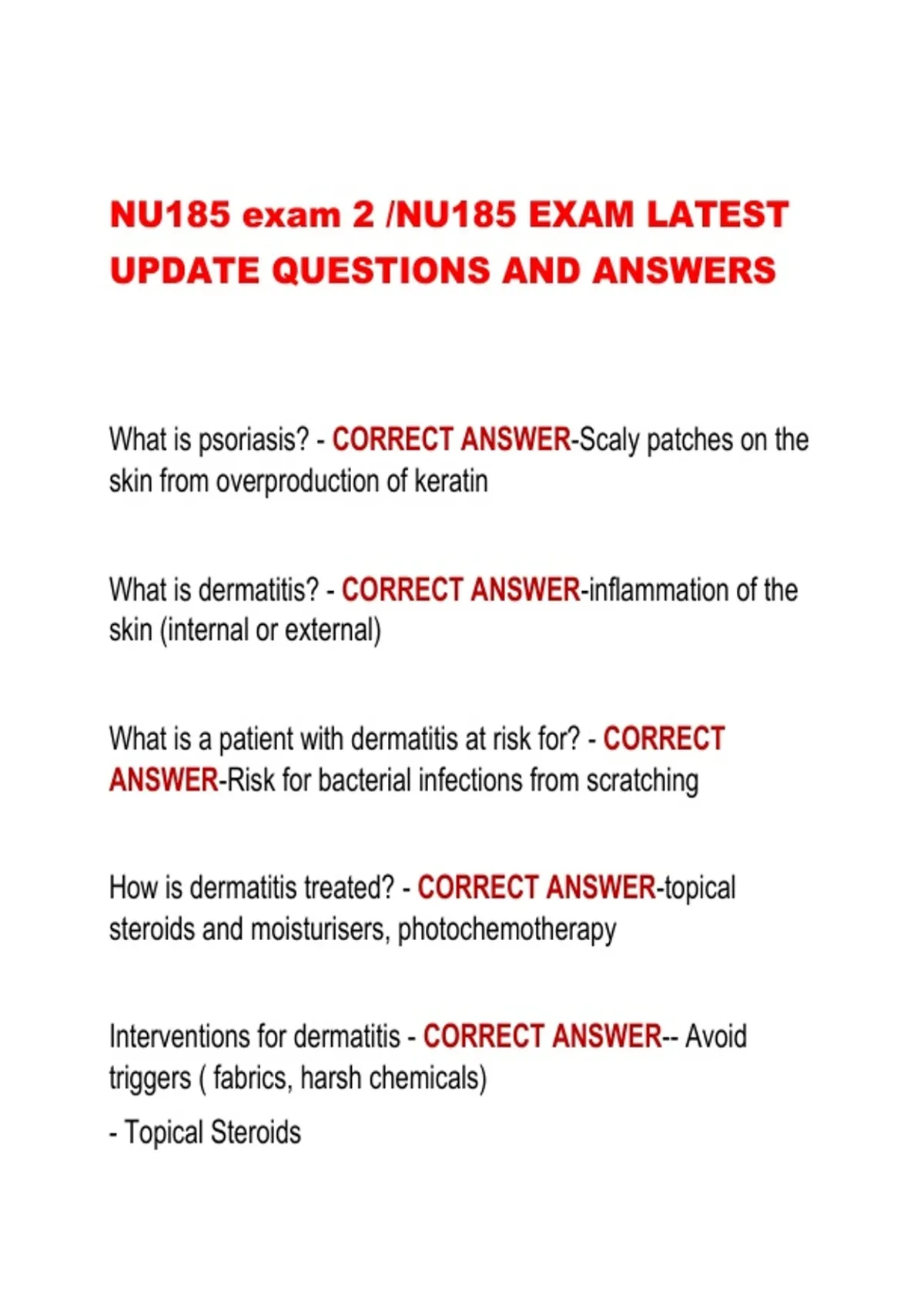 NU185 exam 2 /NU185 EXAM LATEST